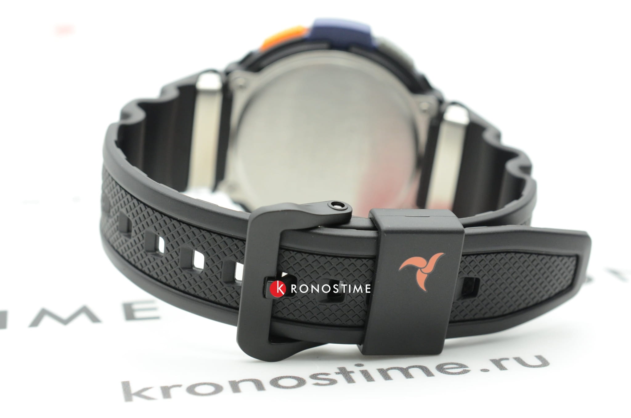 Корпус и браслет многофункциональных и стильных часов от Casio выполнены из высокопрочных полимерных материалов. Есть функции для определения погоды. Часы способны выдержать температуру даже ниже, чем -10 °C. Секундомер измеряет прошедшее время с точностью в 1/100 секунды. Быть максимально пунктуальными помогут 5 независимых будильников. Встроен цифровой компас. Электролюминесцентная подсветкаЭлектролюминесцентная подсветкаЭлектролюминесцентная панель устанавливается под ЖК-экраном часов, при нажатии кнопки электричество преобразуется в свет за счёт подачи напряжения на атомы фосфора, такой тип подсветки позволяет освещать весь циферблат. обеспечивает видимость информации в темноте. Высокая водонепроницаемость в 200 WR.