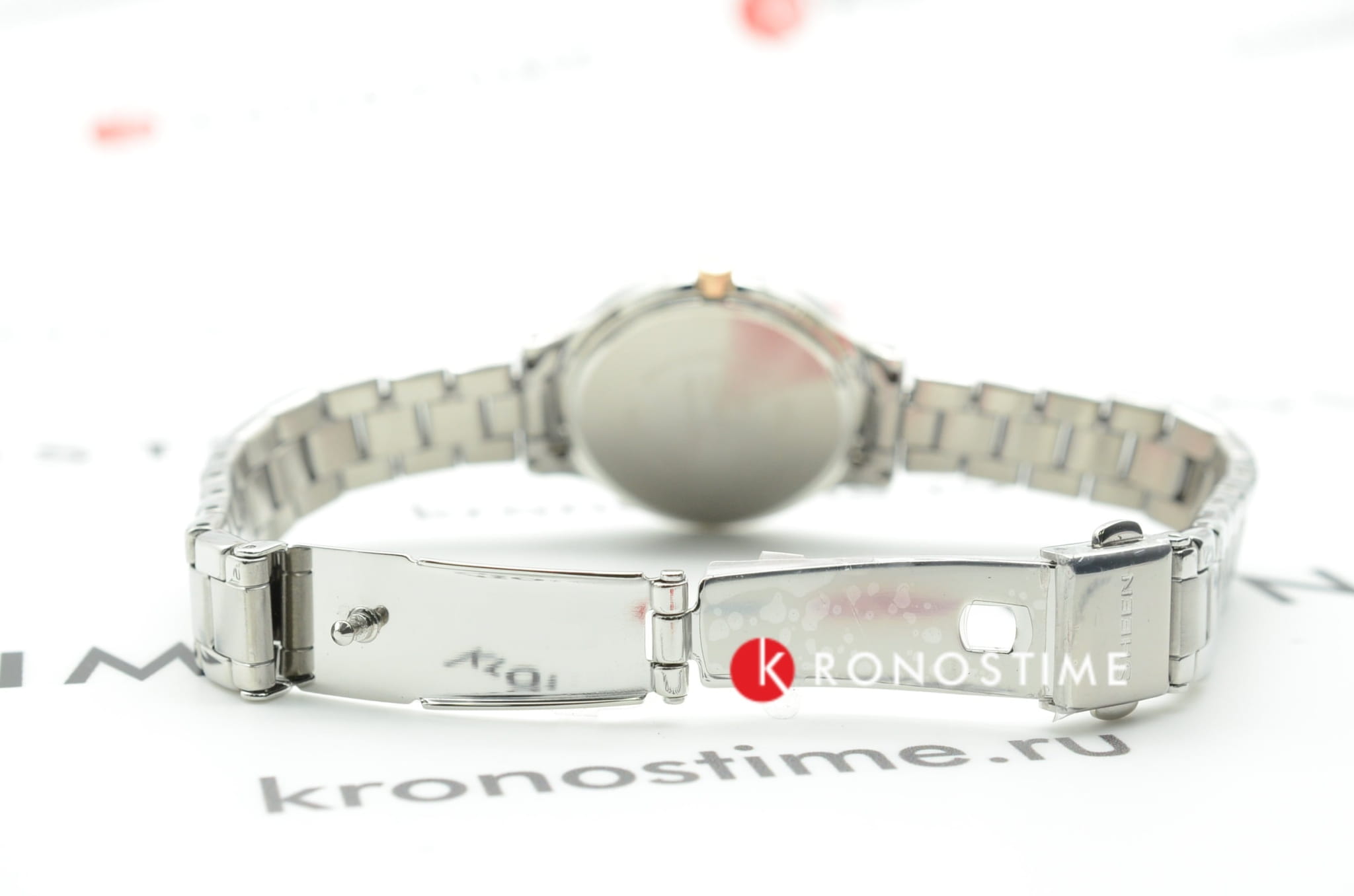 Традиционный круглый циферблат отличается лаконичным исполнением, на светлом фоне ярко выделяются золотистые часовые метки, стрелки и арабские цифры. Оттенок роскоши придают кристаллы Swarovski, их сияние создаёт праздничное настроение. Кварцевый механизм японского производства с высокой точностью хода. IP-покрытиеIP-покрытиеМетод ионного напыления. Демонстрирует повышенную устойчивость к истиранию, окислению и химическим веществам. Под воздействием высокого давления и температуры около 1500°C молекулы металла надёжно соединяются с частицами корпуса часов. цвета розового золота. Тонкий браслет из нержавеющей стали 316L. Водостойкость при давлении 5 бар. Индикация числа. Габариты: 30 x 36,7 x 5,8 мм.