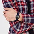 Аккуратный прямоугольный циферблат подсвечивается сбоку микроподсветкой. Секундомер измерят прошедшее время с точностью в 1/100 секунды. Мягкий ремешок из нейлона будет красиво обрамлять запястье. Цифровой способ отображения времени. Экономная батарейка служит 10 лет.