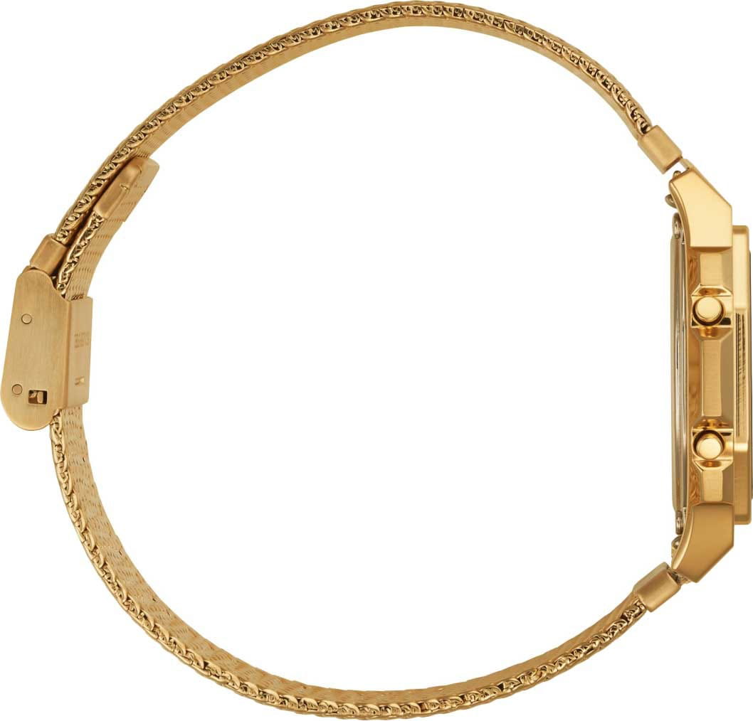 Аксессуар с фирменным для Casio 8-угольным корпусом будет гармонично смотреться как с деловым пиджаком, так и с повседневной водолазкой. Оригинальности добавляет переливающийся цифровой дисплей. Корпус и браслет сделаны из нержавеющей стали 316L с IP-покрытиемIP-покрытиеМетод ионного напыления. Демонстрирует повышенную устойчивость к истиранию, окислению и химическим веществам. Под воздействием высокого давления и температуры около 1500°C молекулы металла надёжно соединяются с частицами корпуса часов., выполняющим декоративную и защитную функцию. Минеральное стеклоМинеральное стеклоМинеральное стекло представляет собой искусственно выращенный минерал кварца. Такое стекло отличается особой устойчивостью к повреждениям и царапинам. Уступает по некоторым качествам сапфировому стеклу. устойчивое к появлению царапин, обладающее высокой прозрачностью. Срок работы батарейки - 3 года. Наличие будильника, секундомера, календаря. Светодиодная подсветкаСветодиодная подсветкаСветодиодная или LED-подсветка обеспечивает появление яркого холодного свечения за счёт LED-элементов - маленьких лампочек. Они потребляют минимальное количество энергии, чаще всего можно встретить 1 светодиод, в нижней части циферблата. дисплея. Габариты: 38 x 39,6 x 7,3 мм.