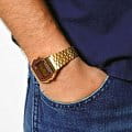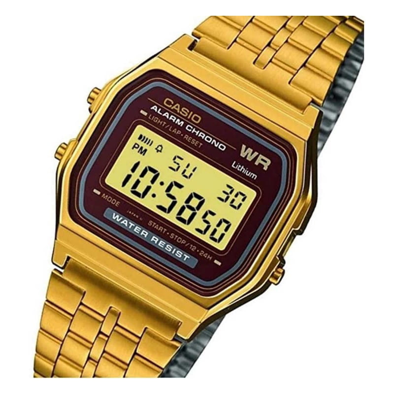 Японские часы унисекс Casio Vintage A159WGEA-5DF, кварцевый механизм с высокой точностью. Класс водозащиты: 30 метров, позволит защитить корпус от случайных брызг или капель дождя. Корпус часов изготовлен из пластика, золотистого цвета.