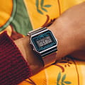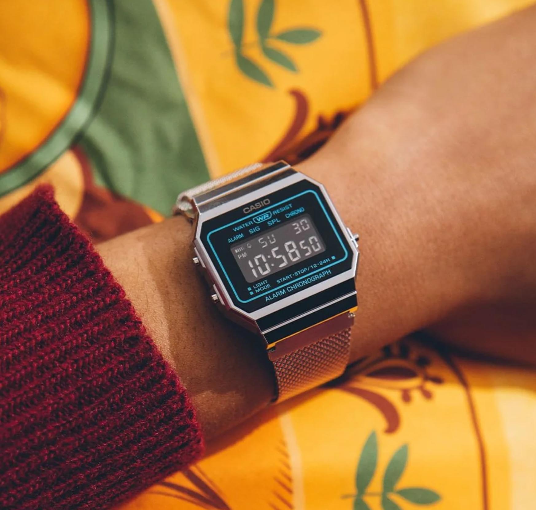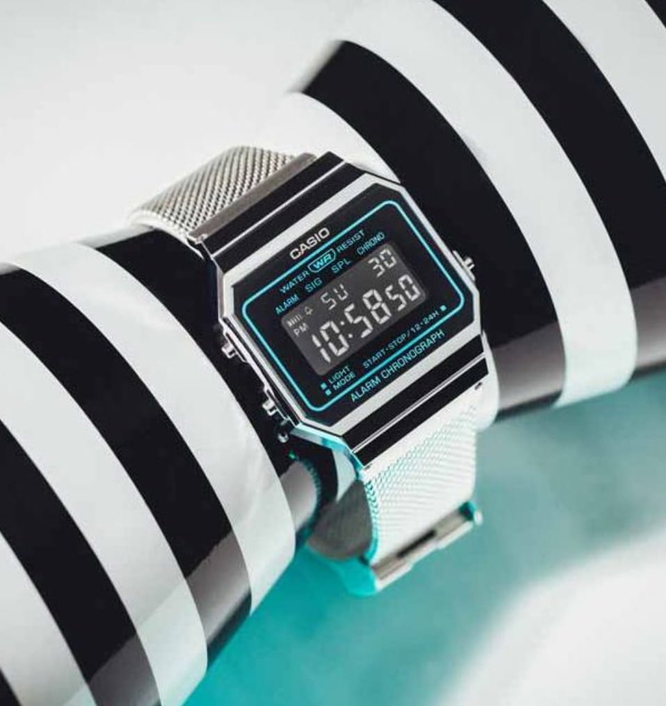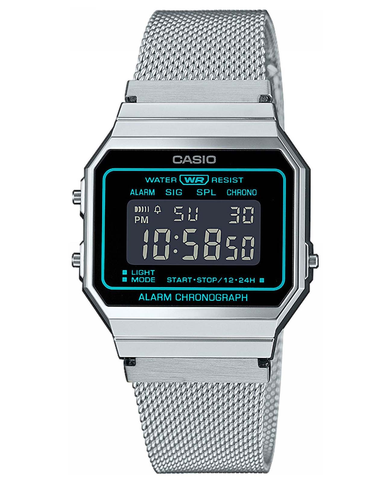 Спортивные японские мужские часы с секундомеромСекундомерСекундоме́р — прибор, способный измерять интервалы времени с точностью до долей секунды. Casio Vintage A700WEMS-1B, кварцевый механизм с высокой точностью. Издавая звуковой сигнал в установленное время, будильникБудильникБуди́льник — часы, в заданный момент времени подающие звуковой, световой и/или в редких случаях другой сигнал. напоминает о событиях, которые повторяются каждый день. Корпус из полимерного пластика. Класс водозащиты: 30 метров, позволит защитить корпус от случайных брызг или капель дождя. Браслет из нержавеющей стали миланского плетения на раскладной застёжкеРаскладная застёжкаТакой тип застёжки используется только на браслетах из металла. Она никогда не раскрывается полностью, происходит разделение на 2 и более частей. Раскладывающая застёжка снизит вероятность потери часов к минимуму..