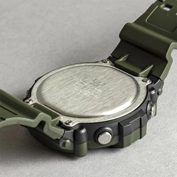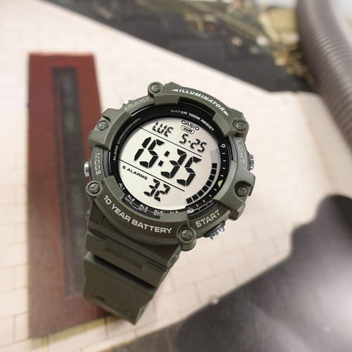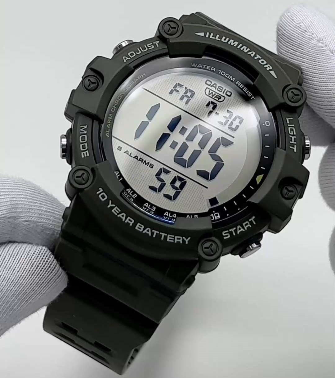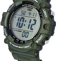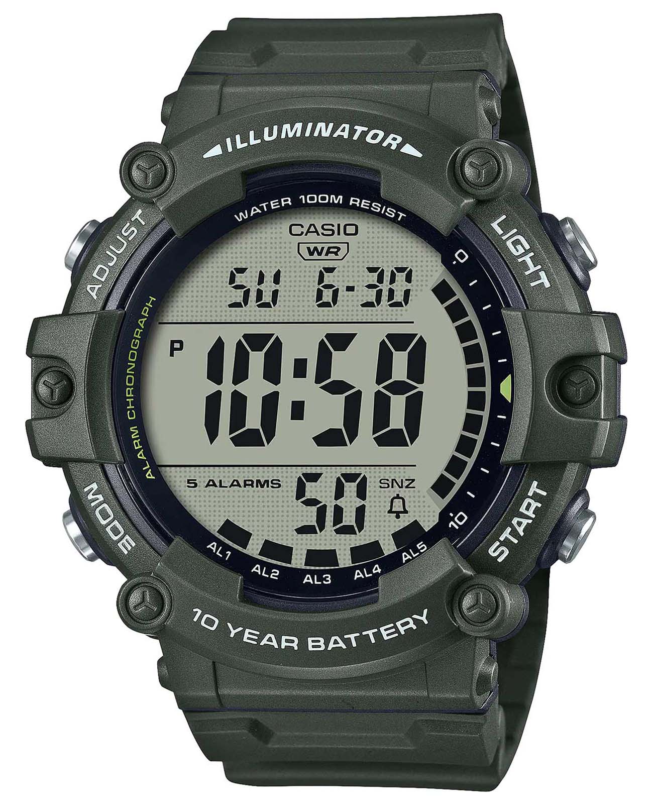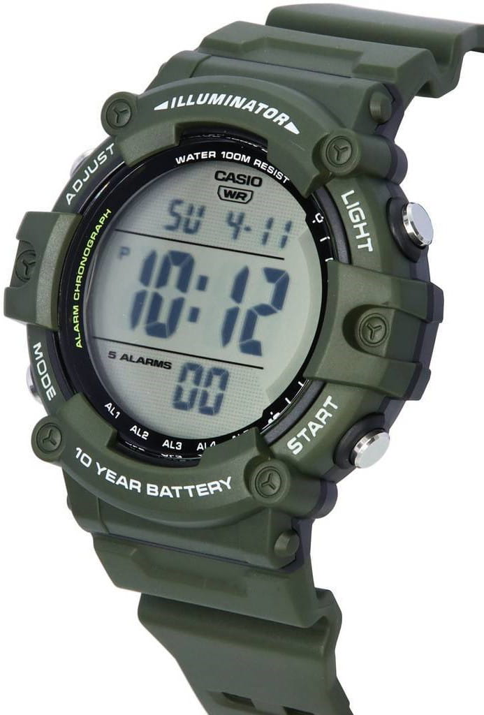 Спортивные японские мужские часы Casio Collection AE-1500WHX-3A, кварцевый механизм с высокой точностью. Класс водозащиты: 100 метров, позволит плавать, нырять и заниматься другими водными видами спорта. Корпус часов изготовлен из пластика. Циферблат подсвечивается светодиодомСветодиодная подсветкаСветодиодная или LED-подсветка обеспечивает появление яркого холодного свечения за счёт LED-элементов - маленьких лампочек. Они потребляют минимальное количество энергии, чаще всего можно встретить 1 светодиод, в нижней части циферблата.. Послесвечение. Цвет подсветки: оранжевый. Второй часовой поясВторой часовой поясФункция, позволяющая отображать время двух часовых поясов одновременно.. 12-ти и 24-х часовой формат времени. СекундомерСекундомерСекундоме́р — прибор, способный измерять интервалы времени с точностью до долей секунды. с точностью показаний 1/100с и временем измерения 24ч. Сплит-хронографСплит-хронографИспользуется для измерения продолжительности нескольких временных отрезков, начинающихся одновременно, а заканчивающихся в разное время.. ТаймерТаймерОтсчитывает секунды в обратном направлении в заданном интервале времени. обратного отсчета от 1мин до 24ч с автоповтором.
