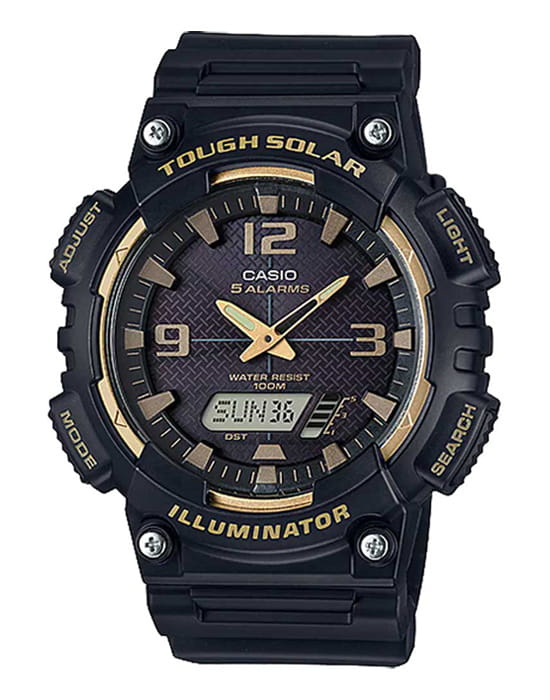 Японские мужские многофункциональные часы AQ-S810W-1A3 в спортивном стиле из коллекции Illuminator. Функции: автоматическая светодиодная подсветка, технология ToughSolarTough SolarТехнология основана на подзарядке аккумулятора от источника солнечного света, специальная панель улавливает солнечные лучи и преобразует их в энергию для работы часов. Достаточно пары минут нахождения на солнце для функционирования часов в течении суток., функция мирового времениМировое время Полезное часовое усложнение, отображающее время в основных городах и известных областях по всему миру, оно связано с часовыми поясами, удобно для путешественников и бизнесменов. , секундомерСекундомерСекундоме́р — прибор, способный измерять интервалы времени с точностью до долей секунды., cплит-хронографСплит-хронографИспользуется для измерения продолжительности нескольких временных отрезков, начинающихся одновременно, а заканчивающихся в разное время., таймерТаймерОтсчитывает секунды в обратном направлении в заданном интервале времени., 5 будильниковБудильникБуди́льник — часы, в заданный момент времени подающие звуковой, световой и/или в редких случаях другой сигнал., UTCUTCВсемирное кординационное время, не имеющее привязки к географическому положению Гринвича, основывается на атомном отсчёте времени. Регулировка времени осуществляется более точно, чем устаревшее GMT.