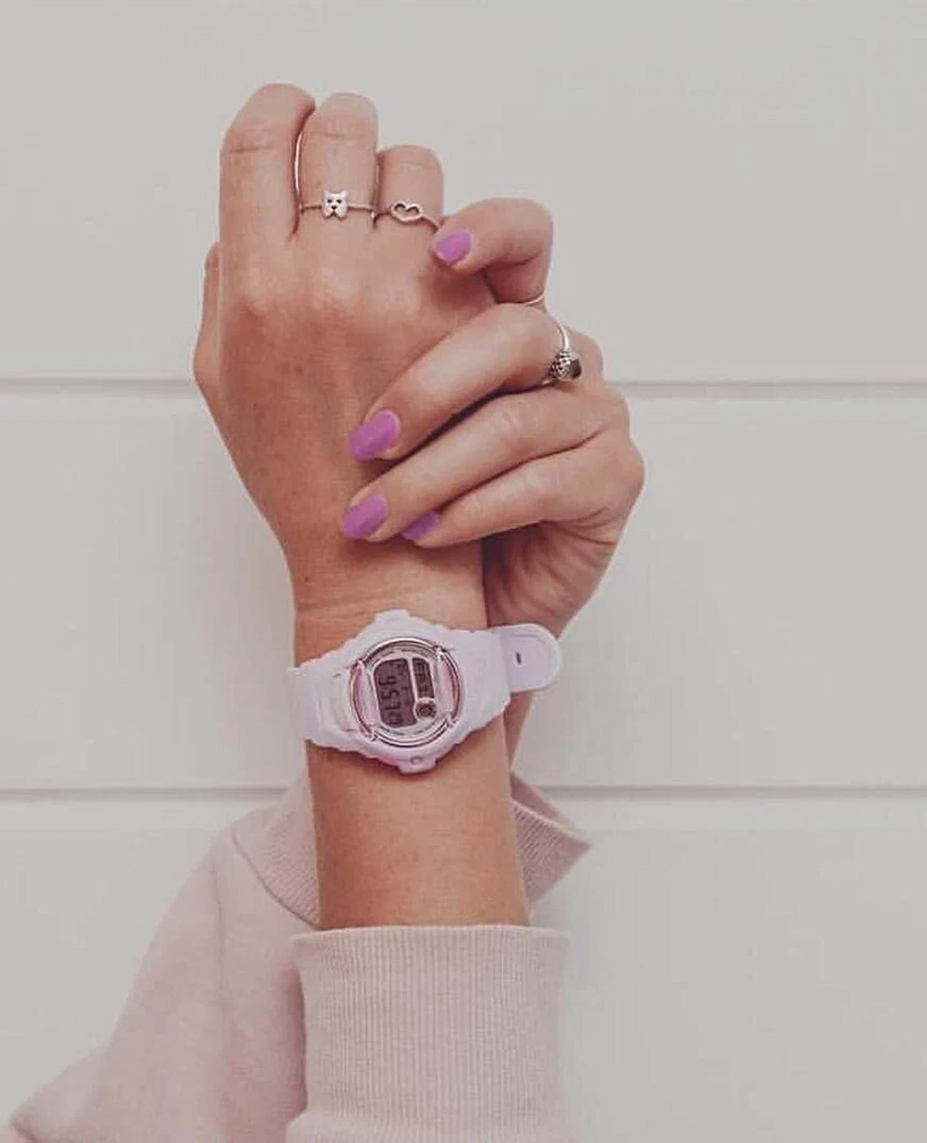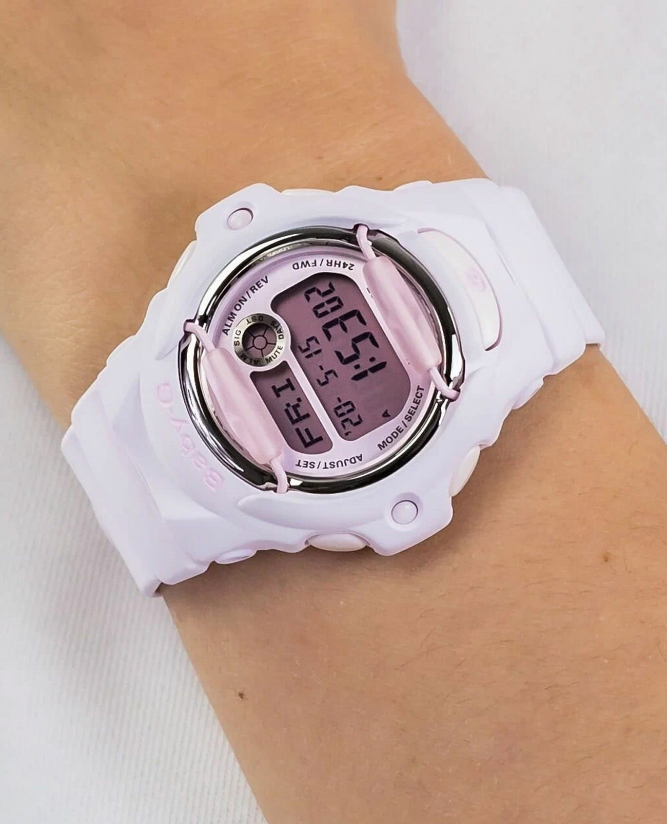 Японские женские часы-хронографХронографФункция позволяет измерять отрезки времени с особой точностью: часы, минуты, секунды. Верным признаком хронографа является наличие на циферблате 3 дополнительных окошек-счётчиков. Casio Baby-G BG-169M-4DR из коллекции Baby-G. Серия, которая выражает спортивность и цвет, которые являются основой бренда Baby-G. Минеральное стеклоМинеральное стеклоМинеральное стекло представляет собой искусственно выращенный минерал кварца. Такое стекло отличается особой устойчивостью к повреждениям и царапинам. Уступает по некоторым качествам сапфировому стеклу. устойчивое к появлению царапин, обладающее высокой прозрачностью. Корпус часов изготовлен из полимерного материала. Функции: автоматическая светодиодная подсветка.Необритовое покрытиеПодсветка NeobriteИспользование светонакопительных составов на основе сульфида цинка или алюмината стронция, яркий свет можно наблюдать на протяжении 6-10 часов после «зарядки» часов около источника света. продолжает светиться в темноте даже после непродолжительного пребывания на свету.Ударопрочный корпусУдаропрочный корпусМеханизм заключён в корпус, выполненный из современных материалов, устойчивых к ударам, механическим повреждениям и падению с высоты: инновационный пластик, карбон, нержавеющая сталь, титан. защищает механизм от ударов и вибрации. Функция Мирового времениМировое время Полезное часовое усложнение, отображающее время в основных городах и известных областях по всему миру, оно связано с часовыми поясами, удобно для путешественников и бизнесменов. . СекундомерСекундомерСекундоме́р — прибор, способный измерять интервалы времени с точностью до долей секунды. с точностью измерения 1/100 секунды и измерением до 23 часов 59 минут 59,99 cек. ТаймерТаймерОтсчитывает секунды в обратном направлении в заданном интервале времени. обратного отсчета (диапазон времени 24 часа), автоматический календарь, 12/24 отображение времени. 5 ежедневных будильниковБудильникБуди́льник — часы, в заданный момент времени подающие звуковой, световой и/или в редких случаях другой сигнал.. Функция записной книжки обеспечивает 25 сохраненных имен и телефонных номеров, которые всегда под рукой благодаря встроенной базе данных. Каждая запись может включать в себя текст из 8 букв и 12 цифр.Класс водозащиты: 200 метров, позволит плавать без погружения. Ремешок из полимерного материала на стандартной застежке.