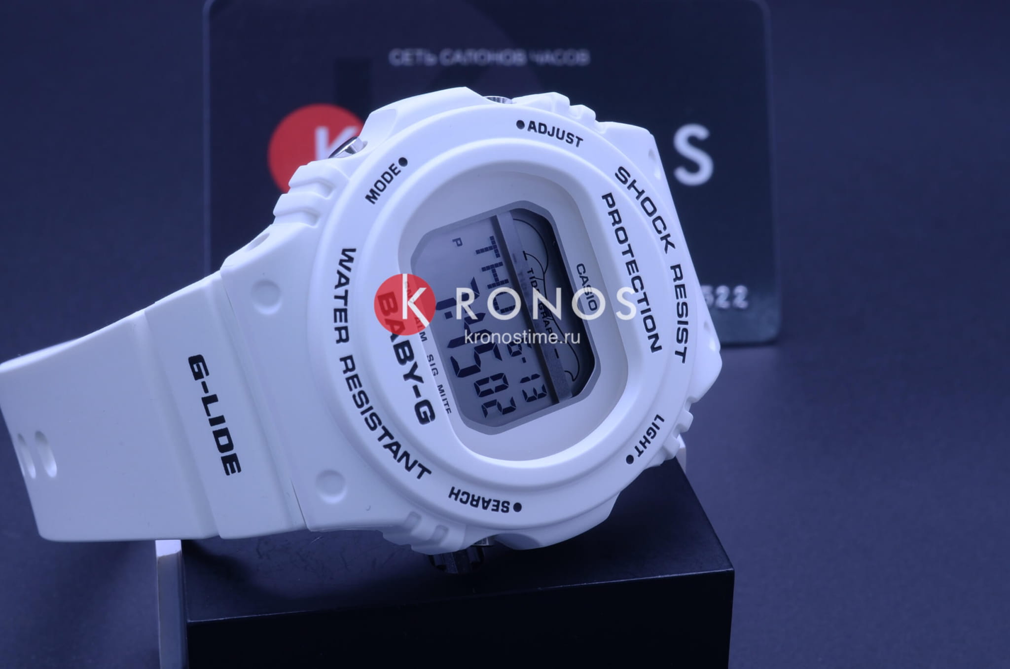 Модель G-Lide с цифровым дисплеем в белом противоударном корпусеУдаропрочный корпусМеханизм заключён в корпус, выполненный из современных материалов, устойчивых к ударам, механическим повреждениям и падению с высоты: инновационный пластик, карбон, нержавеющая сталь, титан. поможет завершить повседневный образ. Покорение водной стихии теперь стало лёгким делом благодаря отображению лунных фаз, составлению графика приливов и отливов. Японский кварцевый механизм. Минеральное стекло. Удобный полимерный ремешок. Электролюминесцентная подсветкаЭлектролюминесцентная подсветкаЭлектролюминесцентная панель устанавливается под ЖК-экраном часов, при нажатии кнопки электричество преобразуется в свет за счёт подачи напряжения на атомы фосфора, такой тип подсветки позволяет освещать весь циферблат.. Водостойкость до 200 метров. Повышенная ударопрочность. секундомер, будильник с функцией «подремать», мировое времяМировое время Полезное часовое усложнение, отображающее время в основных городах и известных областях по всему миру, оно связано с часовыми поясами, удобно для путешественников и бизнесменов. – 48 городов, вечный календарьВечный календарьКлассическое часовое усложнение, представляющее собой календарь, рассчитанный на несколько лет вперёд (стандартно – до 2099 года). Определяет текущую дату, день недели, месяц., таймер, хронографХронографФункция позволяет измерять отрезки времени с особой точностью: часы, минуты, секунды. Верным признаком хронографа является наличие на циферблате 3 дополнительных окошек-счётчиков.. Габариты: 44,9 x 43 x 12,9 мм.