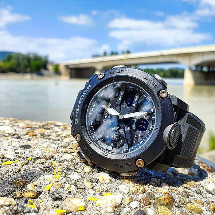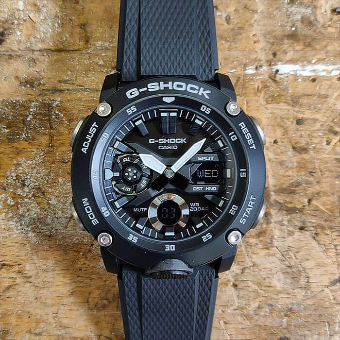Японские мужские часы-хронографХронографФункция позволяет измерять отрезки времени с особой точностью: часы, минуты, секунды. Верным признаком хронографа является наличие на циферблате 3 дополнительных окошек-счётчиков. Casio G-Shock GA-2000S-1A из коллекции G-Shock. Противоударный пластиковый корпус с карбоновыми волокнами более прочный и, в то же время, более легкий. Минеральное стеклоМинеральное стеклоМинеральное стекло представляет собой искусственно выращенный минерал кварца. Такое стекло отличается особой устойчивостью к повреждениям и царапинам. Уступает по некоторым качествам сапфировому стеклу. устойчивое к появлению царапин, обладающее высокой прозрачностью. Ударопрочный корпусУдаропрочный корпусМеханизм заключён в корпус, выполненный из современных материалов, устойчивых к ударам, механическим повреждениям и падению с высоты: инновационный пластик, карбон, нержавеющая сталь, титан. защищает механизм от ударов и вибрации. Многокомпонентный циферблат состоит из цифровых окошек указателей числа и дня недели, а также индикатора режима работы часов, который расположен в позиции 9 часов и выполнен в виде пропеллера. Светодиодная подсветкаСветодиодная подсветкаСветодиодная или LED-подсветка обеспечивает появление яркого холодного свечения за счёт LED-элементов - маленьких лампочек. Они потребляют минимальное количество энергии, чаще всего можно встретить 1 светодиод, в нижней части циферблата. освещает весь циферблат. Мировое времяМировое время Полезное часовое усложнение, отображающее время в основных городах и известных областях по всему миру, оно связано с часовыми поясами, удобно для путешественников и бизнесменов. – 48 городов (29 часовых поясов). СекундомерСекундомерСекундоме́р — прибор, способный измерять интервалы времени с точностью до долей секунды. с точностью измерения 1/100 секунды и измерением до 23 часов 59 минут 59,99 cек. ТаймерТаймерОтсчитывает секунды в обратном направлении в заданном интервале времени. обратного отсчета (диапазон времени 24 часа), автоматический календарь, 12/24 отображение времени. 5 будильниковБудильникБуди́льник — часы, в заданный момент времени подающие звуковой, световой и/или в редких случаях другой сигнал., ежечасный сигнал. Класс водозащиты: 200 метров, позволит плавать, нырять и заниматься другими водными видами спорта. Ремешок из полимерного материала на стандартной застежке.