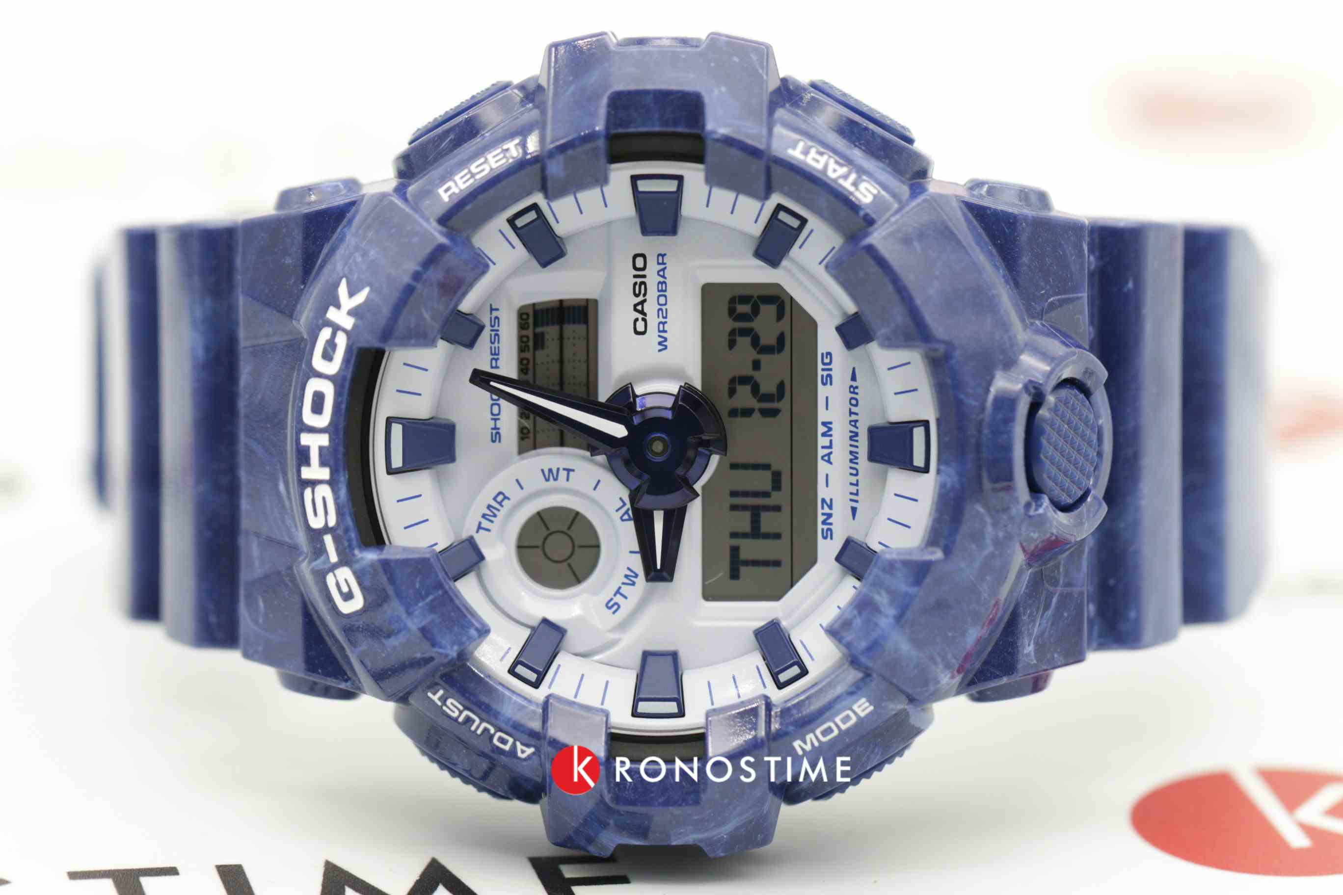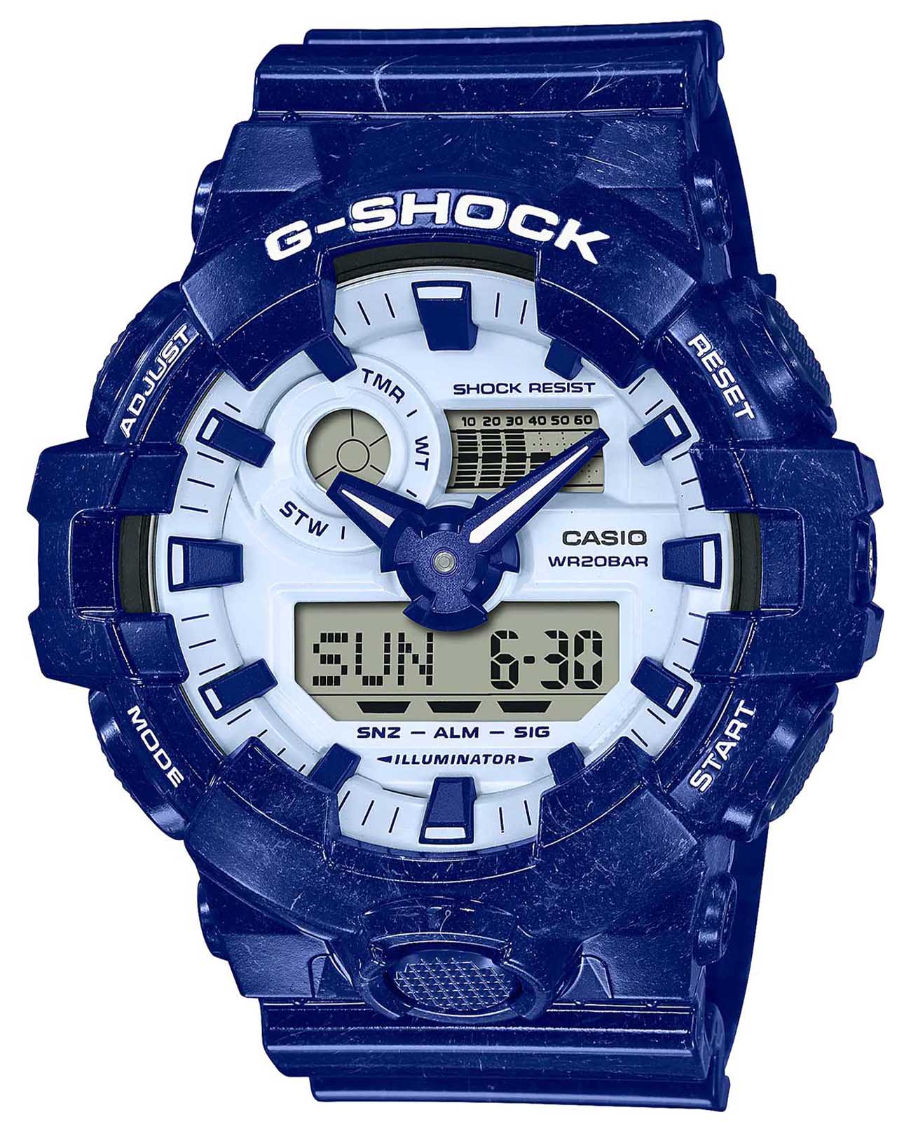 Японские мужские противоударные часы с хронографом Casio G-Shock GA-700BWP-2ADR (GA-700BWP-2A), электронный механизм с высокой точностью. Класс водозащиты: 200 метров, позволит плавать, нырять и заниматься другими водными видами спорта. Корпус часов изготовлен из пластика, цвета.
