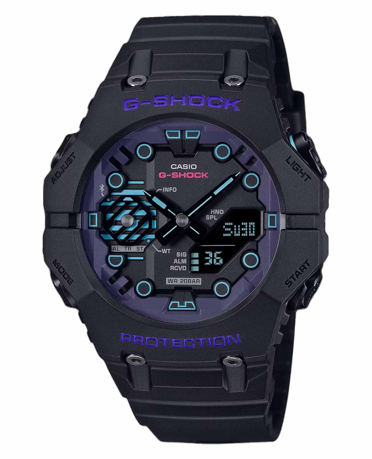 Японские мужские часы-хронографХронографФункция позволяет измерять отрезки времени с особой точностью: часы, минуты, секунды. Верным признаком хронографа является наличие на циферблате 3 дополнительных окошек-счётчиков. Casio G-Shock GA-B001CBR-1ADR. Ориентируйтесь в огромном спектре киберпространства благодаря смелому дизайну, который перенесет вас в мир научно-фантастических сенсаций ближайшего будущего. Вдохновленный страницами научной фантастики, глубокий синий цвет с оттенками красного и фиолетового напоминает о тайнах кибермира и бескрайних просторах вселенной. Минеральное стеклоМинеральное стеклоМинеральное стекло представляет собой искусственно выращенный минерал кварца. Такое стекло отличается особой устойчивостью к повреждениям и царапинам. Уступает по некоторым качествам сапфировому стеклу. устойчивое к появлению царапин, обладающее высокой прозрачностью. Tough SolarTough SolarТехнология основана на подзарядке аккумулятора от источника солнечного света, специальная панель улавливает солнечные лучи и преобразует их в энергию для работы часов. Достаточно пары минут нахождения на солнце для функционирования часов в течении суток..  Ударопрочный корпусУдаропрочный корпусМеханизм заключён в корпус, выполненный из современных материалов, устойчивых к ударам, механическим повреждениям и падению с высоты: инновационный пластик, карбон, нержавеющая сталь, титан. защищает механизм от ударов и вибрации. Светодиодная подсветкаСветодиодная подсветкаСветодиодная или LED-подсветка обеспечивает появление яркого холодного свечения за счёт LED-элементов - маленьких лампочек. Они потребляют минимальное количество энергии, чаще всего можно встретить 1 светодиод, в нижней части циферблата. освещает весь циферблат, после отпускания кнопки свечение продолжается еще некоторое время. Настраиваемое послесвечение 1,5 или 3сек. Мировое время Мировое время Полезное часовое усложнение, отображающее время в основных городах и известных областях по всему миру, оно связано с часовыми поясами, удобно для путешественников и бизнесменов. 38 городов (38 часовых поясов), всемирное координированное время UTCUTCВсемирное кординационное время, не имеющее привязки к географическому положению Гринвича, основывается на атомном отсчёте времени. Регулировка времени осуществляется более точно, чем устаревшее GMT.