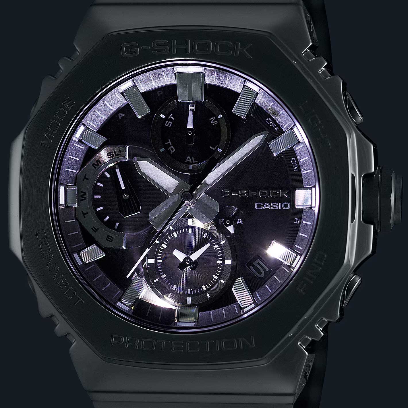 Модель Casio G-SHOCK GMC-B2100D-1A сочетает элегантность металлического корпуса и передовые технологии. Восьмиугольный безельБезельВнешний ободок, закрепляющий стекло. В спортивных часах так называется поворотное кольцо с делениями на циферблате, выполняет роль таймера – замеряет отрезки времени на шкале. Неподвижный безель – элемент декора. Однонаправленно вращающийся безель на дайверских часах позволяет фиксировать моменты погружения и выныривания на поверхность., вдохновленный оригинальной моделью DW-5000C 1983 года, придает часам современный минималистичный стиль. Корпус и браслет изготовлены из нержавеющей стали, а амортизирующие элементы из мелкозернистой смолы защищают механизм от ударов и вибраций, обеспечивая ударопрочностьУдаропрочный корпусМеханизм заключён в корпус, выполненный из современных материалов, устойчивых к ударам, механическим повреждениям и падению с высоты: инновационный пластик, карбон, нержавеющая сталь, титан.. Часы оснащены солнечным питанием Tough SolarTough SolarТехнология основана на подзарядке аккумулятора от источника солнечного света, специальная панель улавливает солнечные лучи и преобразует их в энергию для работы часов. Достаточно пары минут нахождения на солнце для функционирования часов в течении суток., которое позволяет заряжать аккумулятор от солнечного света, а также Bluetooth®-синхронизациейBluetoothСовременная технология, позволяющая синхронизировать часы с телефоном и переносить данные. Часы с Bluetooth расширяют возможности вашего смартфона и делают его использование ещё более удобным., обеспечивающей автоматическую корректировку времени и управление настройками через приложение CASIO WATCHES. Дополнительные функции включают мировое времяМировое время Полезное часовое усложнение, отображающее время в основных городах и известных областях по всему миру, оно связано с часовыми поясами, удобно для путешественников и бизнесменов. , секундомерСекундомерСекундоме́р — прибор, способный измерять интервалы времени с точностью до долей секунды., таймер обратного отсчетаТаймерОтсчитывает секунды в обратном направлении в заданном интервале времени., будильникиБудильникБуди́льник — часы, в заданный момент времени подающие звуковой, световой и/или в редких случаях другой сигнал. и светодиодную подсветкуСветодиодная подсветкаСветодиодная или LED-подсветка обеспечивает появление яркого холодного свечения за счёт LED-элементов - маленьких лампочек. Они потребляют минимальное количество энергии, чаще всего можно встретить 1 светодиод, в нижней части циферблата.. Водонепроницаемость до 200 метров делает модель подходящей для плавания и активного отдыха. Casio G-SHOCK GMC-B2100D-1A — это надежный и стильный аксессуар, идеально сочетающий прочность, технологичность и современный дизайн.