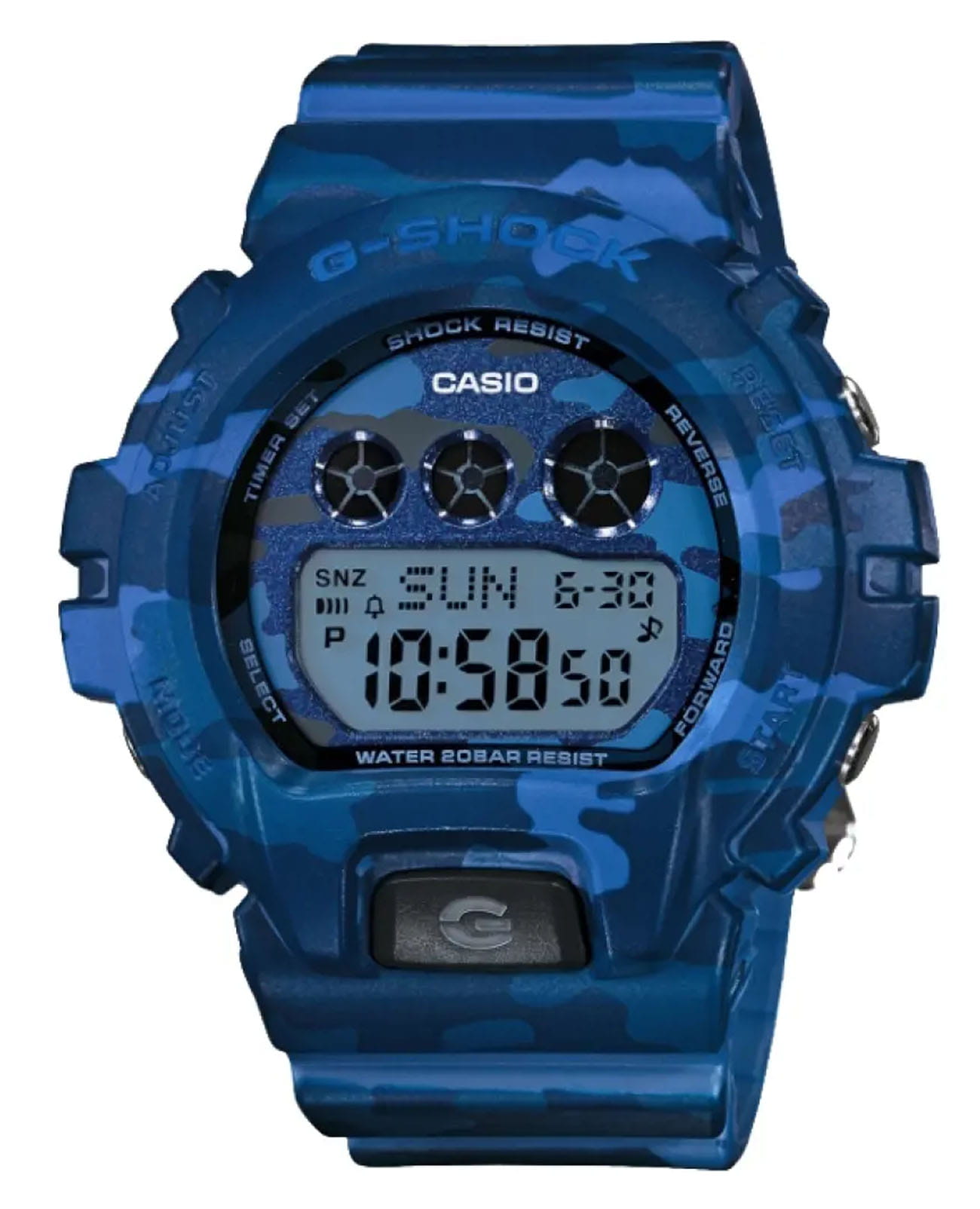 Японские часы-хронографХронографФункция позволяет измерять отрезки времени с особой точностью: часы, минуты, секунды. Верным признаком хронографа является наличие на циферблате 3 дополнительных окошек-счётчиков. Casio G-Shock GMD-S6900CF-2ER из коллекции G-Shock. Минеральное стеклоМинеральное стеклоМинеральное стекло представляет собой искусственно выращенный минерал кварца. Такое стекло отличается особой устойчивостью к повреждениям и царапинам. Уступает по некоторым качествам сапфировому стеклу. устойчивое к появлению царапин, обладающее высокой прозрачностью. Ударопрочный корпусУдаропрочный корпусМеханизм заключён в корпус, выполненный из современных материалов, устойчивых к ударам, механическим повреждениям и падению с высоты: инновационный пластик, карбон, нержавеющая сталь, титан. защищает механизм от ударов и вибрации. Электролюминесцентная подсветкаЭлектролюминесцентная подсветкаЭлектролюминесцентная панель устанавливается под ЖК-экраном часов, при нажатии кнопки электричество преобразуется в свет за счёт подачи напряжения на атомы фосфора, такой тип подсветки позволяет освещать весь циферблат. освещает весь циферблат, после отпускания кнопки свечение продолжается еще некоторое время. Мировое времяМировое время Полезное часовое усложнение, отображающее время в основных городах и известных областях по всему миру, оно связано с часовыми поясами, удобно для путешественников и бизнесменов. – 48 городов (29 часовых поясов). СекундомерСекундомерСекундоме́р — прибор, способный измерять интервалы времени с точностью до долей секунды. с точностью измерения 1/100 секунды и измерением до 23 часов 59 минут 59,99 cек. ТаймерТаймерОтсчитывает секунды в обратном направлении в заданном интервале времени. обратного отсчета (диапазон времени 24 часа), автоматический календарь, 12/24 отображение времени. 3 будильникаБудильникБуди́льник — часы, в заданный момент времени подающие звуковой, световой и/или в редких случаях другой сигнал., один с функцией Snooze, ежечасный сигнал.  Класс водозащиты: 200 метров, позволит плавать, нырять и заниматься другими водными видами спорта. Ремешок из полимерного материала на стандартной застежке.
