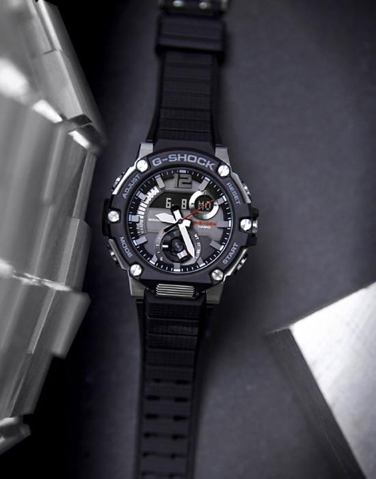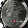 Корпус имеет структуру Carbon Core GuardCarbon Core Guard Новейшая структура корпуса, разработанная Casio. Полиуретановая пластина дополнительно усилена карбоновыми вставками, что придаёт специальную защиту от механических повреждений. Карбон отличается лёгкостью и прочностью., что говорит о повышенной ударопрочности. БезельБезельВнешний ободок, закрепляющий стекло. В спортивных часах так называется поворотное кольцо с делениями на циферблате, выполняет роль таймера – замеряет отрезки времени на шкале. Неподвижный безель – элемент декора. Однонаправленно вращающийся безель на дайверских часах позволяет фиксировать моменты погружения и выныривания на поверхность. изготовлен из стали 316L. Японский кварцевый механизм отличается высокой точностью хода 15 +/- секунд в месяц. Часы оснащены инновационной технологией , синхронизация со смартфоном происходит с помощью BluetoothBluetoothСовременная технология, позволяющая синхронизировать часы с телефоном и переносить данные. Часы с Bluetooth расширяют возможности вашего смартфона и делают его использование ещё более удобным.. Возможности: двойная автоматическая подсветка, мировое времяМировое время Полезное часовое усложнение, отображающее время в основных городах и известных областях по всему миру, оно связано с часовыми поясами, удобно для путешественников и бизнесменов. , будильник, хронографХронографФункция позволяет измерять отрезки времени с особой точностью: часы, минуты, секунды. Верным признаком хронографа является наличие на циферблате 3 дополнительных окошек-счётчиков., календарь, таймер.