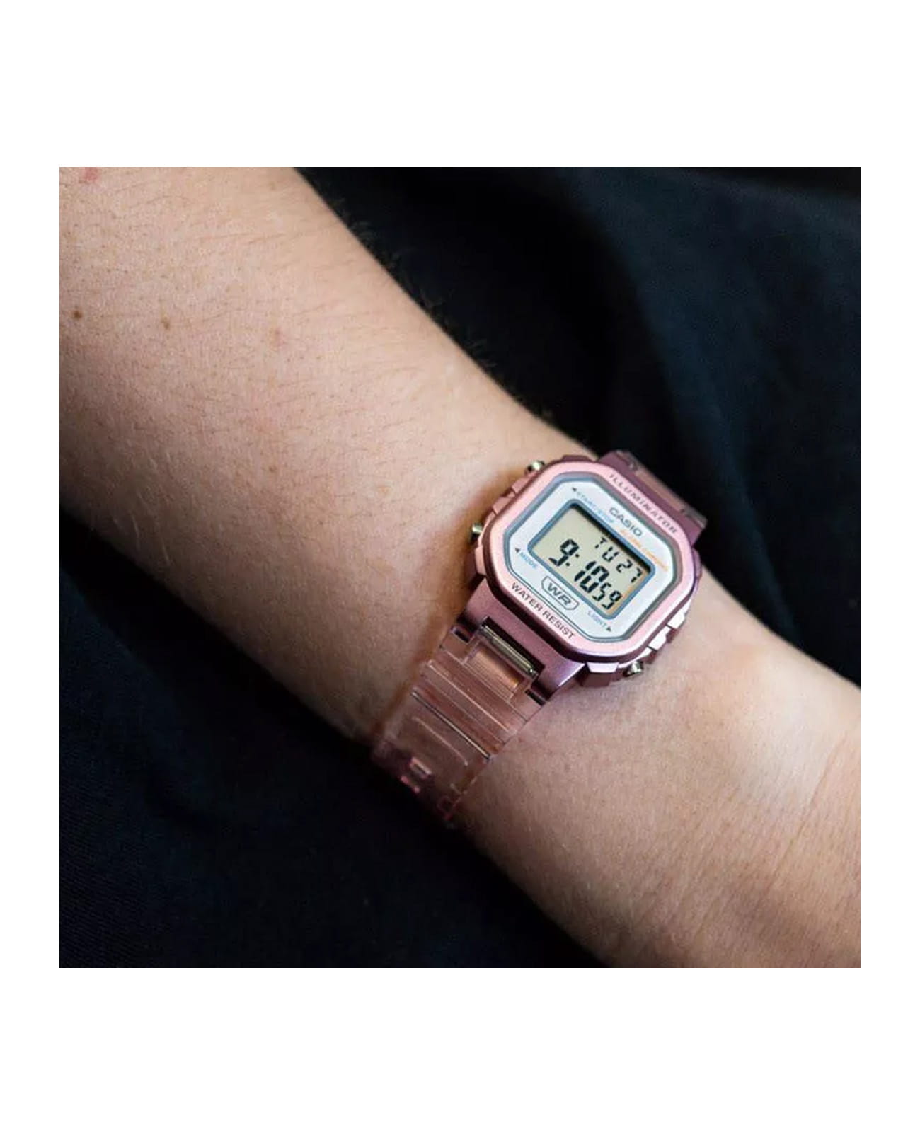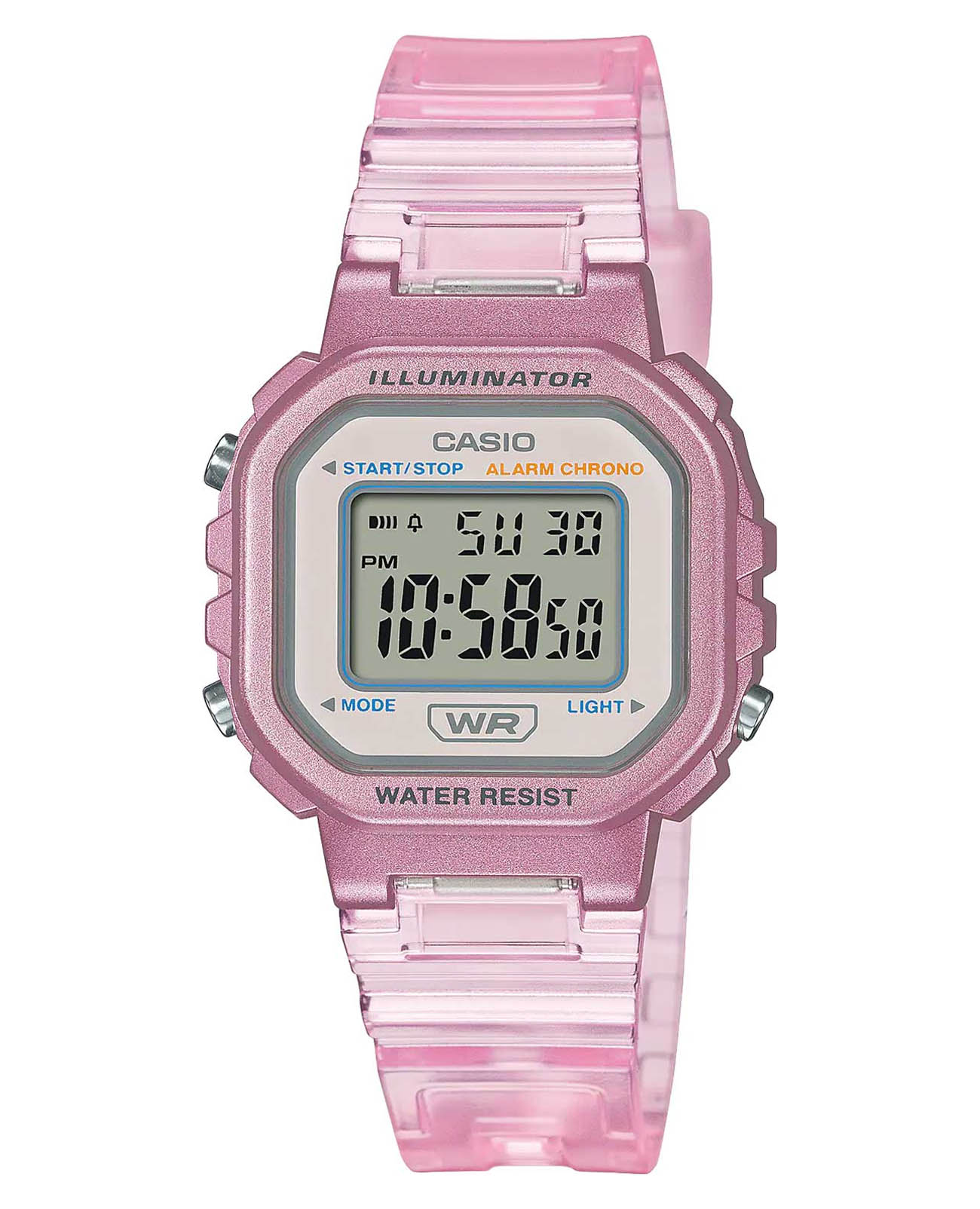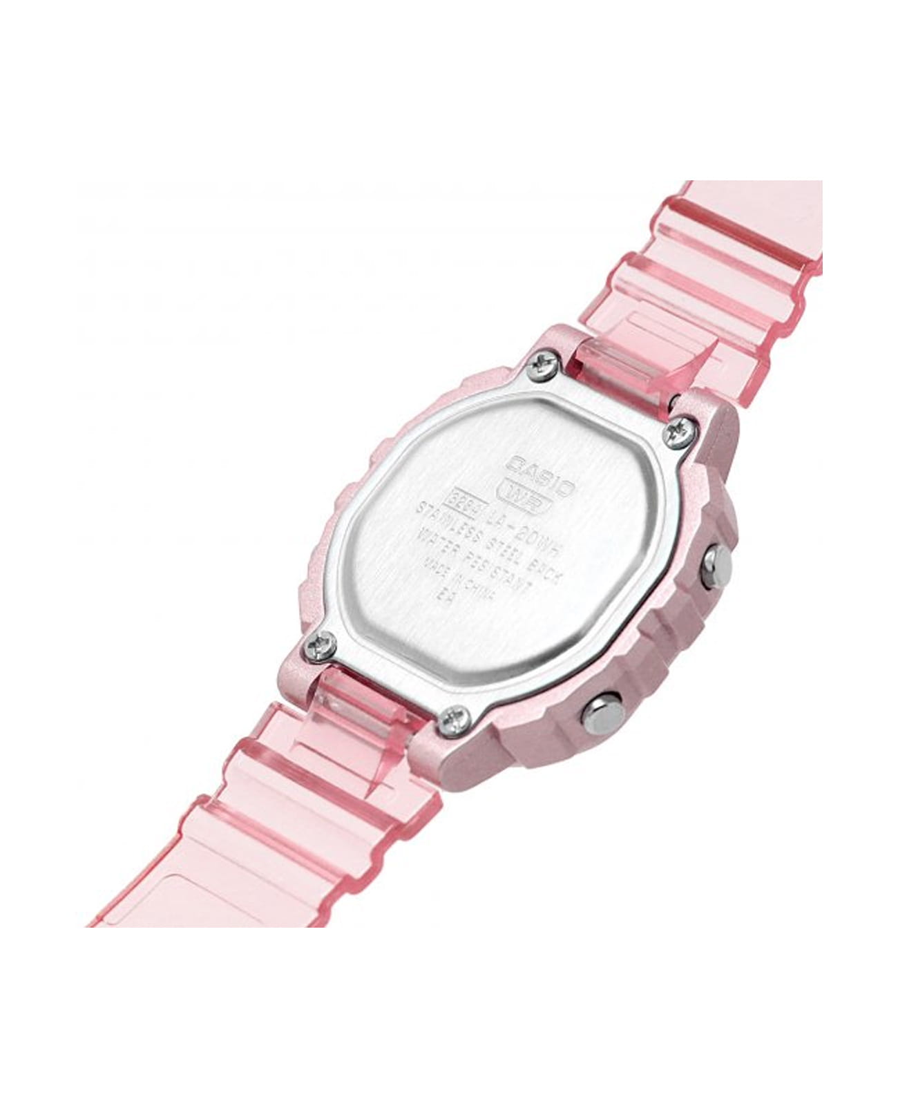 Японские женские часы-хронографХронографФункция позволяет измерять отрезки времени с особой точностью: часы, минуты, секунды. Верным признаком хронографа является наличие на циферблате 3 дополнительных окошек-счётчиков. с органическим стеклом Casio Collection LA-20WHS-4AEF, кварцевый механизм с высокой точностью. Корпус часов изготовлен из пластика. СекундомерСекундомерСекундоме́р — прибор, способный измерять интервалы времени с точностью до долей секунды. с точностью измерения 1/100 секунды и измерением 1 ч. 12-ти и 24-х часовой формат времени. БудильникБудильникБуди́льник — часы, в заданный момент времени подающие звуковой, световой и/или в редких случаях другой сигнал., ежечасный сигнал. Автоматический календарь: число, день недели. Батарея рассчитана на 5 лет. Класс водозащиты: 30 метров, позволит защитить корпус от случайных брызг или капель дождя. Ремешок из полимерного материала на стандартной застежке.