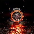 Лимитированные японские мужские мультифункциональные часы Casio G-Shock MTG-B3000FR-1A. Модель отличается ярким оформлением с ударением на солнечные вспышки, украшающие безель из углеродного сплава с вкраплениями фосфоресцирующих мелких частиц. Благодаря еще более совершенной конструкции Dual Core Guard часы MTG-B3000 защищают модуль в корпусе из армированной карбоном смолы. значительно тоньше своих предшественников. MTG-B3000FR-1A оснащены модулем «5672», самый тонкий из когда-либо существовавших хронографов G-Shock на солнечной батарее по технологии Tough SolarTough SolarТехнология основана на подзарядке аккумулятора от источника солнечного света, специальная панель улавливает солнечные лучи и преобразует их в энергию для работы часов. Достаточно пары минут нахождения на солнце для функционирования часов в течении суток..