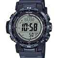 Японские мужские часы-хронографХронографФункция позволяет измерять отрезки времени с особой точностью: часы, минуты, секунды. Верным признаком хронографа является наличие на циферблате 3 дополнительных окошек-счётчиков. Casio Pro Trek PRW-35Y-2. Перед вами эволюционный релиз в линейке Pro Trek — стильная и функциональная цифровая модель из серии PRW-35 в черном полимерном корпусе с инверсионным дисплеем на мягком и прочном ремешке из биополимера. Часы созданы для путешествий, хайкинга и активного времяпровождения на природе. Минеральное стеклоМинеральное стеклоМинеральное стекло представляет собой искусственно выращенный минерал кварца. Такое стекло отличается особой устойчивостью к повреждениям и царапинам. Уступает по некоторым качествам сапфировому стеклу. устойчивое к появлению царапин, обладающее высокой прозрачностью. Корпус часов изготовлен из стали с IP-покрытиемIP-покрытиеМетод ионного напыления. Демонстрирует повышенную устойчивость к истиранию, окислению и химическим веществам. Под воздействием высокого давления и температуры около 1500°C молекулы металла надёжно соединяются с частицами корпуса часов.и биопластика, который изготавливается из возобновляемых органических ресурсов. Питание от солнечной энергии Tough SolarTough SolarТехнология основана на подзарядке аккумулятора от источника солнечного света, специальная панель улавливает солнечные лучи и преобразует их в энергию для работы часов. Достаточно пары минут нахождения на солнце для функционирования часов в течении суток.- солнечные батарейки большой мощности, индикатор заряда батареи. Функция автоматического сохранения энергии. Время работы аккумулятора без подзарядки - 6 месяцев, при включенной функции сохранения энергии - 22 месяца. Модуль часов рассчитан на работу при низких температурах до -10°С/14°F. Циферблат подсвечивается ярким светодиодомСветодиодная подсветкаСветодиодная или LED-подсветка обеспечивает появление яркого холодного свечения за счёт LED-элементов - маленьких лампочек. Они потребляют минимальное количество энергии, чаще всего можно встретить 1 светодиод, в нижней части циферблата., при недостаточном освещении во время поворота запястья в сторону лица подсветка включается автоматически. Настраиваемое послесвечение 1,5 или 3сек. Цвет подсветки: белый. 12-ти и 24-х часовой формат времени. СекундомерСекундомерСекундоме́р — прибор, способный измерять интервалы времени с точностью до долей секунды. с точностью показаний 1/10с и временем измерения 1000ч. Сплит-хронографСплит-хронографИспользуется для измерения продолжительности нескольких временных отрезков, начинающихся одновременно, а заканчивающихся в разное время.. ТаймерТаймерОтсчитывает секунды в обратном направлении в заданном интервале времени. обратного отсчета от 1мин до 24ч. Мировое времяМировое время Полезное часовое усложнение, отображающее время в основных городах и известных областях по всему миру, оно связано с часовыми поясами, удобно для путешественников и бизнесменов. – 48 городов. Переключение между домашним и мировым временем. Время восхода и захода Солнца на определенную дату. Технология Multi Band 6 позволяет принимать сигналы от шести радиовышек, расположенных в различных точках земного шара, которые передают временные сигналы от определенных атомных часов. Коррекция текущ