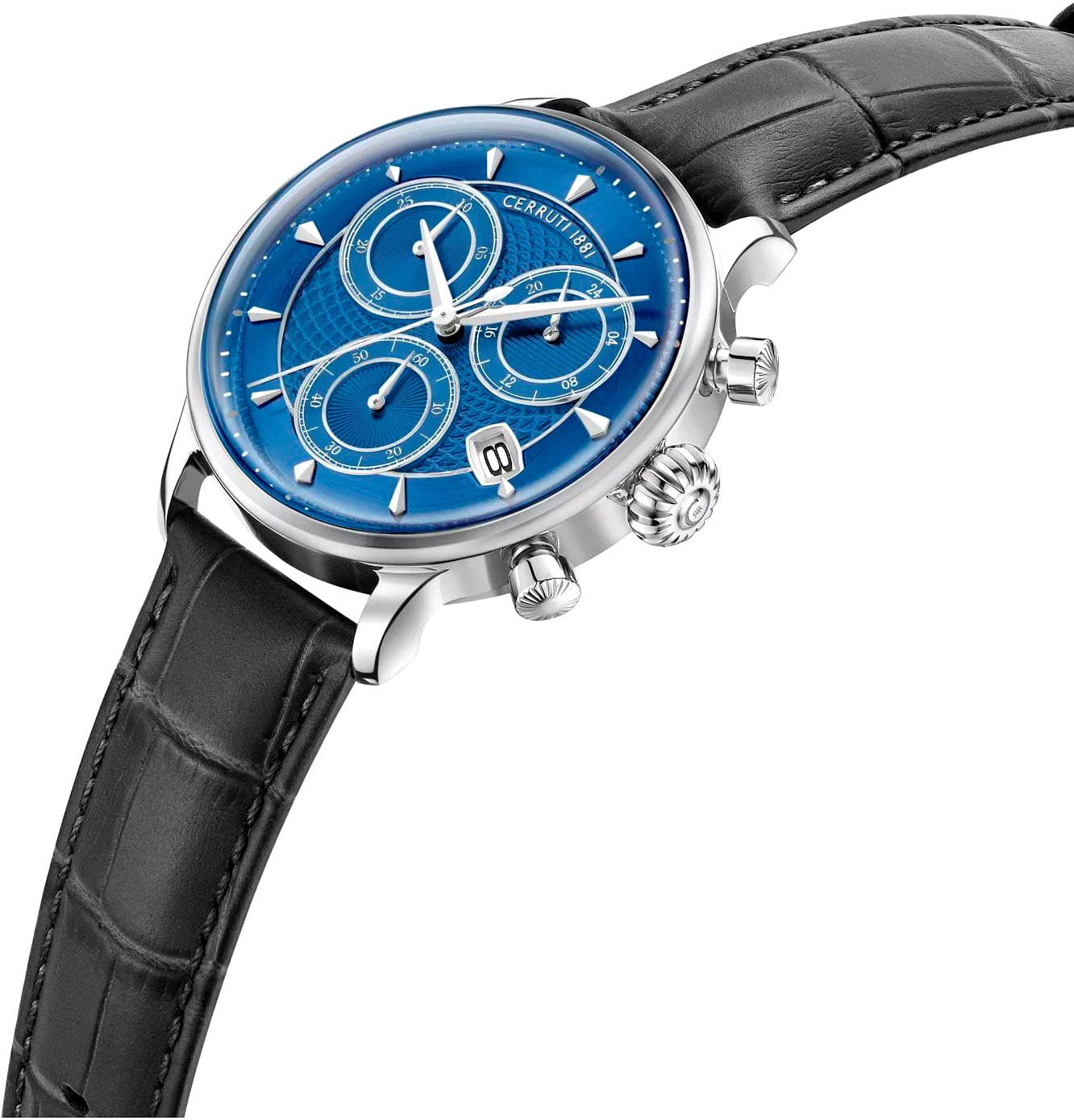 Cerruti 1881 CIWGC0073303 — элегантные мужские часы, сочетающие классическую форму корпуса с выразительной спортивной функциональностью. На рельефном циферблате расположены три дополнительных индикатора хронографаХронографФункция позволяет измерять отрезки времени с особой точностью: часы, минуты, секунды. Верным признаком хронографа является наличие на циферблате 3 дополнительных окошек-счётчиков. и окошко даты в положении «4 часа». Корпус из нержавеющей стали подчёркивает солидность модели, а контрастные акценты на стрелках и метках придают ей изысканный характер. Стекло минеральноеМинеральное стеклоМинеральное стекло представляет собой искусственно выращенный минерал кварца. Такое стекло отличается особой устойчивостью к повреждениям и царапинам. Уступает по некоторым качествам сапфировому стеклу. обеспечивает надёжную защиту от царапин. Кожаный ремешок с классической прострочкой дополняет образ и фиксируется удобной стандартной застежкой. Эта модель удачно объединяет традиционную утончённость и современную энергию, подойдя как к деловому, так и повседневному стилю.