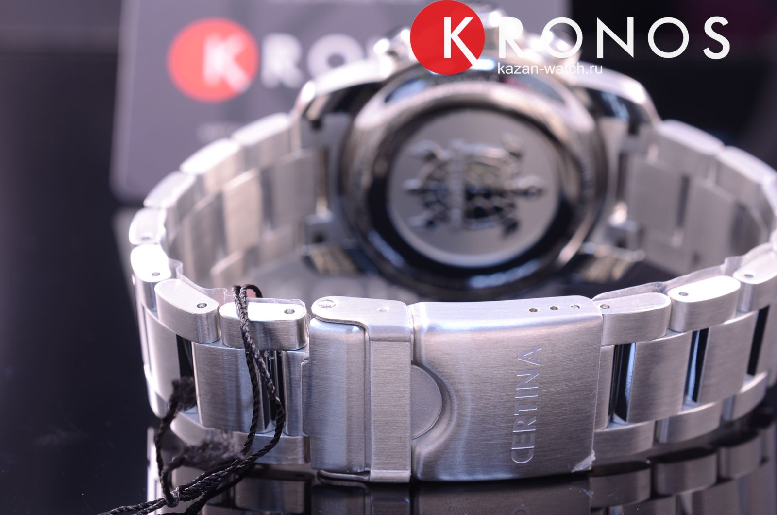 Часы Certina – это воплощение высочайшей точности и надежности часов, система DS расшифровывается Double Security; "двойная надежность". Беспрекословная точность и надежность, использование сложных технологий, инновационный подход в сочетании с традициями создания хронографов, которые марка пронесла через десятилетия, – все это позволяет компании предоставлять элитные, роскошные и стильные часы. На обратной стороне нанесено изображение черепахи в знак долговечности. Задняя крышка с повышенной прочностью, два кольца с уплотнением на заводной головке.