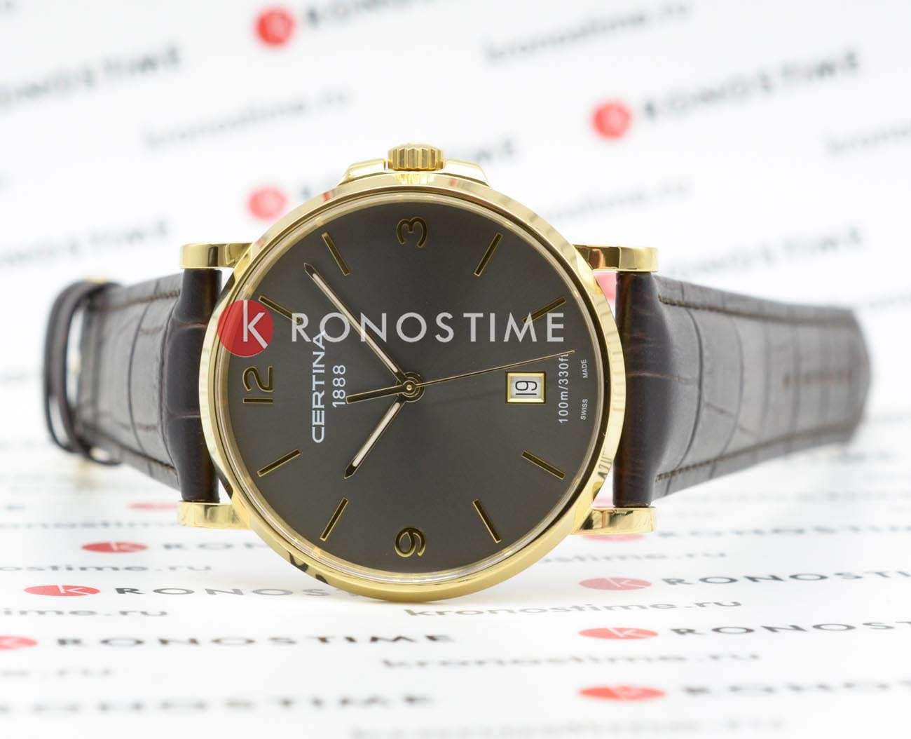 Наручные часы добавят элегантности в деловой или повседневный образ, лаконичность никогда не утратит актуальности. Аксессуар основан на концепции Двойной Защиты DS ConceptDS ConceptDouble Security Concept, обозначает двойную надёжность и безупречную точность часов Certina. Двойная система защиты подразумевает обеспечение максимальной устойчивости к ударам и высоких показателей водонепроницаемости., что позволяет ему стойко переносить любые условия. Швейцарский кварцевый калибр ETA F06.111 с высокой точностью хода. Надёжный корпус из стали 316L с противокоррозионными свойствами и золотистым PVD-покрытиемPVDУльтратонкое покрытие наносится в технике вакуумного напыления, сочетает в себе нитрид титана особой прочности со слоем золота или оксида хрома. Несёт в себе декоративную или защитную функцию.. Ремешок из натуральной кожи, поверхность которого сделана под рисунок кожи крокодила. Стекло из сапфира не допускает появления царапин. Стрелки с люминесцентным покрытиемЛюминесцентное покрытиеПозволяет считывать показания времени в темноте. Производители наносят на стрелки, часовые индексы, безель или поверхность циферблата светонакопительный состав, дающий холодное свечение.. Водозащита 100 метров. Апертура даты, индикатор EOLEOLПредставляет собой систему, уведомляющую владельца часов о необходимости замены элемента питания. За 2 недели до полного разряда батарейки секундная стрелка перестаёт ходить чётко и начинает перепрыгивать на 3-4 деления.. Диаметр корпуса: 38 мм.