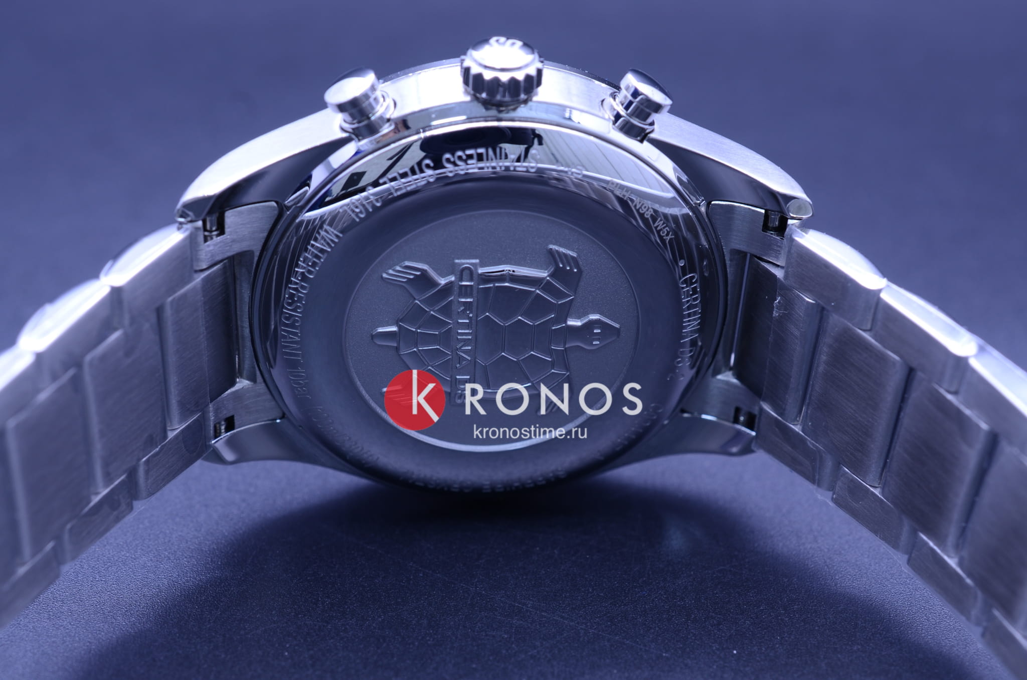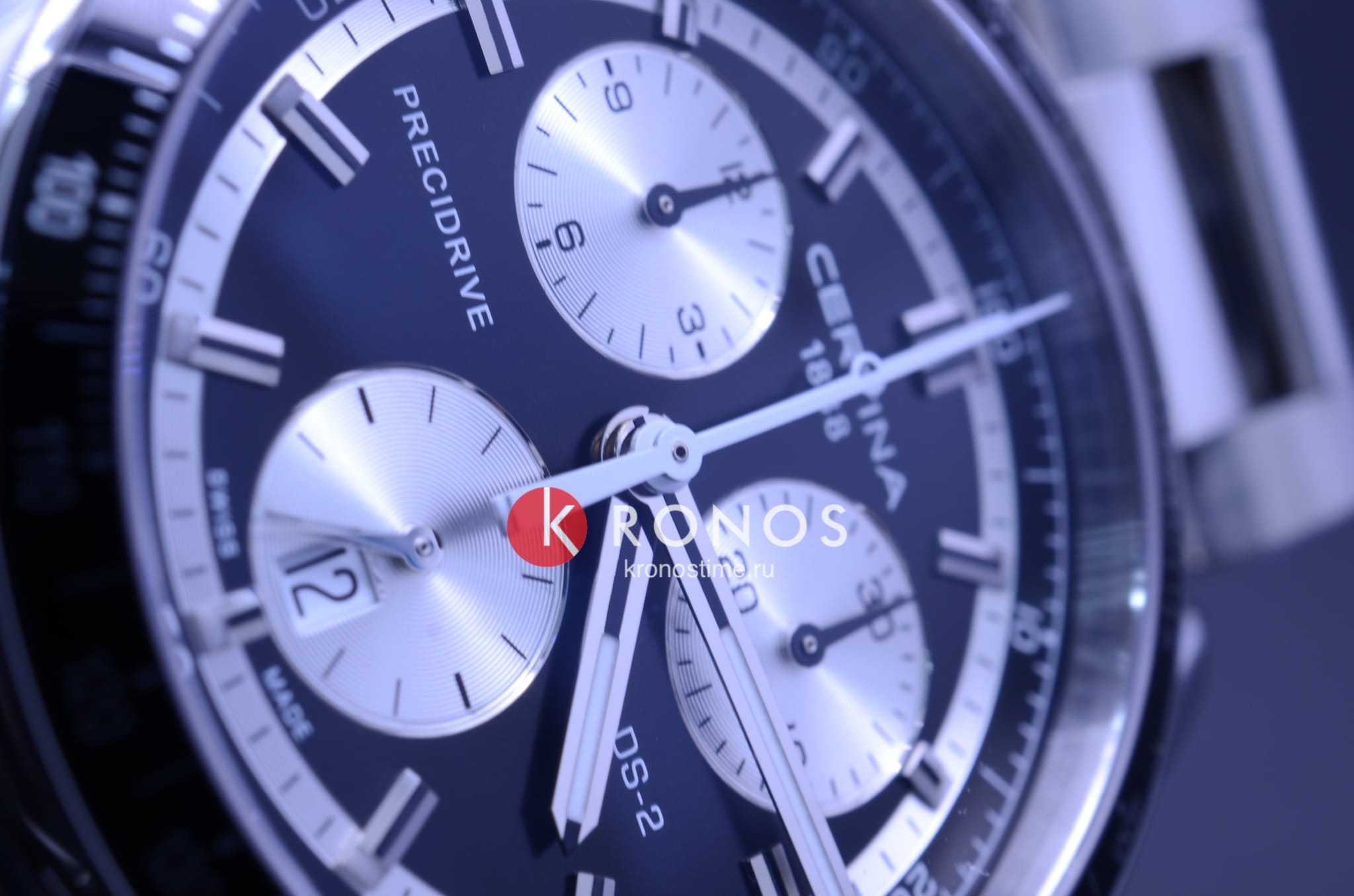Брендовый аксессуар сразу притягивает внимание. Циферблат «panda-style», дополненный контрастными элементами и функциональными окошками, отражает спортивную динамичность. Алюминиевый безельБезельВнешний ободок, закрепляющий стекло. В спортивных часах так называется поворотное кольцо с делениями на циферблате, выполняет роль таймера – замеряет отрезки времени на шкале. Неподвижный безель – элемент декора. Однонаправленно вращающийся безель на дайверских часах позволяет фиксировать моменты погружения и выныривания на поверхность. размечен шкалой тахиметраТахиметрРазмеченная шкала, располагается на ободке или безеле часов. Тахиметр позволяет рассчитать скорость на определённом участке пути, расстояние измеряется в километрах или милях.. Часы основаны на концепции Double SecurityDS ConceptDouble Security Concept, обозначает двойную надёжность и безупречную точность часов Certina. Двойная система защиты подразумевает обеспечение максимальной устойчивости к ударам и высоких показателей водонепроницаемости., что свидетельствует о высокой устойчивости к ударам и водонепроницаемости (до 10 бар) модели. Швейцарский кварцевый калибр ETA 251.264 Precidrive™Precidrive™Инновационный кварцевый механизм Certina. Часы, оснащённые этим швейцарским калибром, приравниваются к точности к сертифицированным хронометрам, точность хода составляет +/-10 секунд в год., измеряющий время с точностью до одной сотой секунды. Двухстороннее антибликовое покрытие для стекла из сапфира. Корпус и браслет из стали 316L с антикоррозионными свойствами. Задняя крышка с фирменной гравировкой. ХронографХронографФункция позволяет измерять отрезки времени с особой точностью: часы, минуты, секунды. Верным признаком хронографа является наличие на циферблате 3 дополнительных окошек-счётчиков., календарь, индикатор EOLEOLПредставляет собой систему, уведомляющую владельца часов о необходимости замены элемента питания. За 2 недели до полного разряда батарейки секундная стрелка перестаёт ходить чётко и начинает перепрыгивать на 3-4 деления., секундомер. Диаметр корпуса: 41 мм.