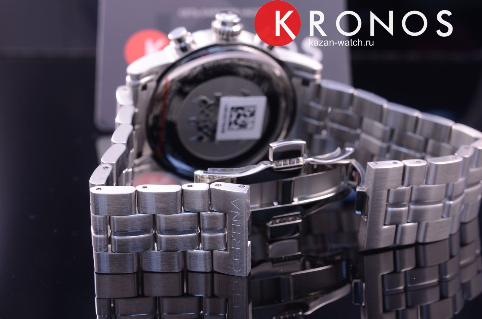 Модель гармонично соединяет в себе лаконичную элегантность и спортивную составляющую. Чёрный циферблат имеет крупные элементы, обеспечивающими оптимальную читаемость показаний времени. Часы устойчивы к высоким нагрузкам благодаря концепции DS ConceptDS ConceptDouble Security Concept, обозначает двойную надёжность и безупречную точность часов Certina. Двойная система защиты подразумевает обеспечение максимальной устойчивости к ударам и высоких показателей водонепроницаемости., дополнительной неуязвимости способствуют сапфировое стекло, заводная головка с защитным уплотнением и нержавеющая сталь в качестве основного материала. Швейцарский кварцевый механизм ETA G10.212 AA Precidrive™Precidrive™Инновационный кварцевый механизм Certina. Часы, оснащённые этим швейцарским калибром, приравниваются к точности к сертифицированным хронометрам, точность хода составляет +/-10 секунд в год.. Водостойкость 100 метров. Задняя крышка с гравировкой. Алюминиевый безельБезельВнешний ободок, закрепляющий стекло. В спортивных часах так называется поворотное кольцо с делениями на циферблате, выполняет роль таймера – замеряет отрезки времени на шкале. Неподвижный безель – элемент декора. Однонаправленно вращающийся безель на дайверских часах позволяет фиксировать моменты погружения и выныривания на поверхность.. Люминесцентная подсветкаЛюминесцентное покрытиеПозволяет считывать показания времени в темноте. Производители наносят на стрелки, часовые индексы, безель или поверхность циферблата светонакопительный состав, дающий холодное свечение. стрелок. . Измерение десятых долей секунд в режиме реального времени, хронографХронографФункция позволяет измерять отрезки времени с особой точностью: часы, минуты, секунды. Верным признаком хронографа является наличие на циферблате 3 дополнительных окошек-счётчиков., отображение числа, индикатор , EOLEOLПредставляет собой систему, уведомляющую владельца часов о необходимости замены элемента питания. За 2 недели до полного разряда батарейки секундная стрелка перестаёт ходить чётко и начинает перепрыгивать на 3-4 деления.. Диаметр корпуса: 42 мм.