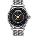 С часами DS-1 Day-Date каждый день особенный: кроме даты в отдельном окошке, на циферблате отображается день недели с помощью вытянутого указателя на отметке «12 часов». Элегантные стрелки в форме «Dauphine» и выпуклое сапфировое стеклоСапфировое стеклоПрочный и надёжный материал из кристалла сапфира синтетического происхождения, характеризующийся особой твёрдостью и устойчивостью к царапинам и повреждениям. придают модели с высококачественным автоматическим механизмом утонченный ретростиль. Водостойкость 100 метров. . Апертура даты. Диаметр корпуса: 40 мм.