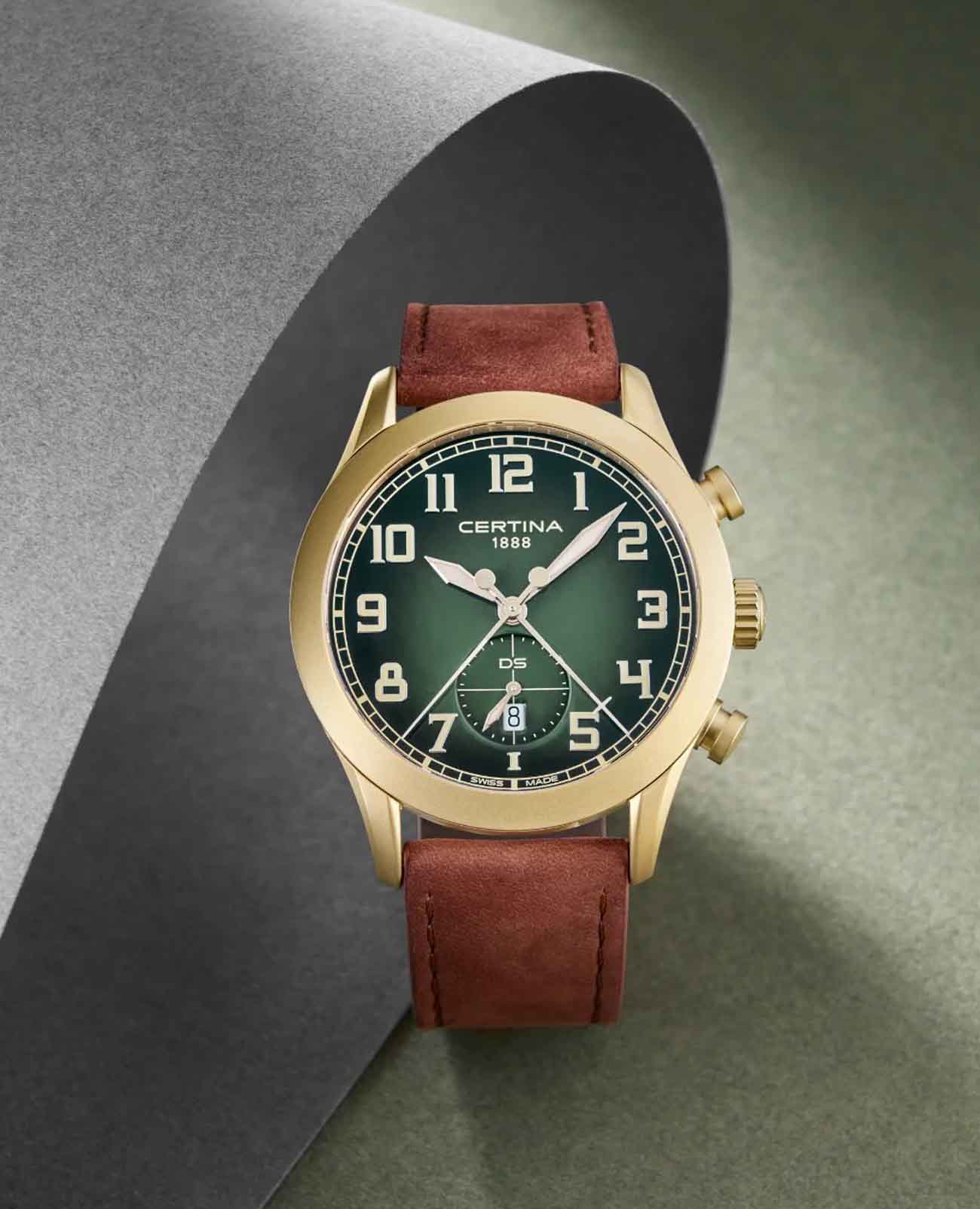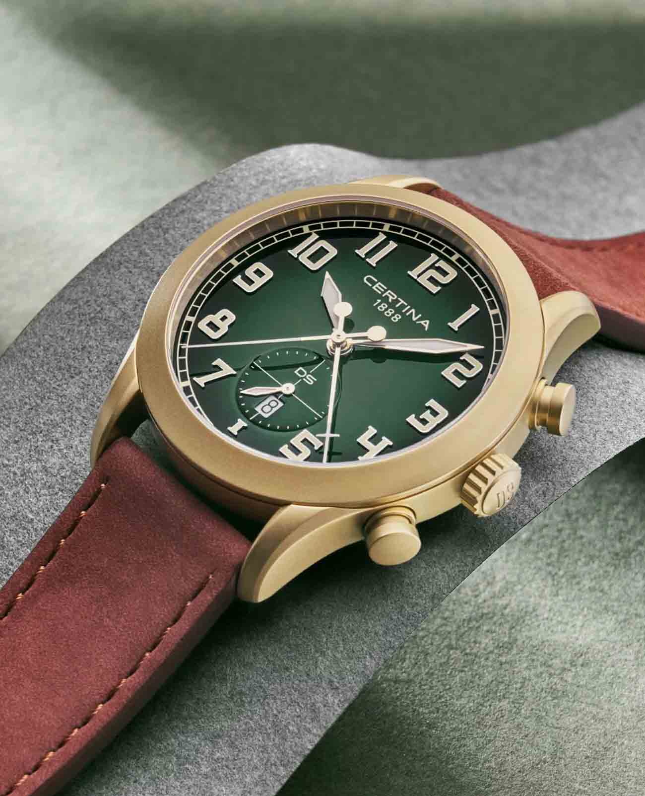 Мужские швейцарские часы Certina DS Pilot C0246173609200, кварцевый механизм с высокой точностью. Сапфировое стеклоСапфировое стеклоПрочный и надёжный материал из кристалла сапфира синтетического происхождения, характеризующийся особой твёрдостью и устойчивостью к царапинам и повреждениям. устойчивое к появлению царапин, обладающее высокой прозрачностью. Корпус изготовлен из нержавеющей стали с PVD-покрытиемPVDУльтратонкое покрытие наносится в технике вакуумного напыления, сочетает в себе нитрид титана особой прочности со слоем золота или оксида хрома. Несёт в себе декоративную или защитную функцию.. Стрелки с люминесцентным покрытиемЛюминесцентное покрытиеПозволяет считывать показания времени в темноте. Производители наносят на стрелки, часовые индексы, безель или поверхность циферблата светонакопительный состав, дающий холодное свечение.. Окошко даты находится в положении 6 часов. Класс водозащиты: 100 метров, позволит плавать, нырять и заниматься другими водными видами спорта. Кожаный браслет на стандартной застежке.