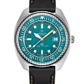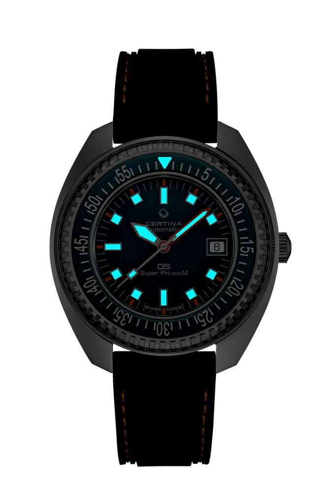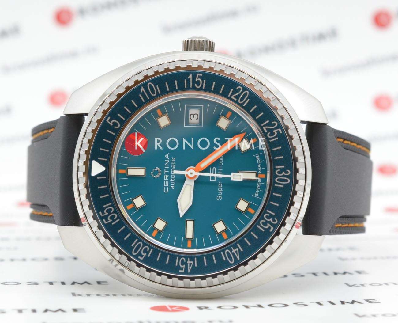 Certina DS SUPER PH1000M STC C024.907.17.041.10 – часы для поклонников ярких аксессуаров. Корпус изготовлен из высококачественной нержавеющей стали 316L с . Под твердым сапфировым стекломСапфировое стеклоПрочный и надёжный материал из кристалла сапфира синтетического происхождения, характеризующийся особой твёрдостью и устойчивостью к царапинам и повреждениям. с антибликовым покрытиемАнтибликовое покрытиеСлой оксида металла в 0,13-0,3 микрон, благодаря которому стекло часов не бликует и не отражает свет. Антибликовое покрытие уменьшает отражение света в 10 раз, обеспечивая отличную читаемость показателей циферблата. находится бирюзовый циферблат на котором вы найдете окошко даты в положении 3 часа, а также маркировку, покрытую люминесцентным покрытиемЛюминесцентное покрытиеПозволяет считывать показания времени в темноте. Производители наносят на стрелки, часовые индексы, безель или поверхность циферблата светонакопительный состав, дающий холодное свечение. Super-LumiNova. Все это приводится в действие автоматическим механизмом Powermatic 80Powermatic 80Эксклюзивный калибр от швейцарской компании ETA с увеличенным запасом хода до 80 часов за счёт удлинённой заводной пружины. Характеризуется улучшенной системой спуска со сниженным трением..611 с пружиной Nivachron™Nivachron™Специально разработанный инновационный сплав Nivachron™ повышает устойчивость часов к воздействию магнитных полей.. Класс водозащиты: 1000 метров, позволит плавать, нырять и заниматься другими водными видами спорта. Кожаный ремешок. БезельБезельВнешний ободок, закрепляющий стекло. В спортивных часах так называется поворотное кольцо с делениями на циферблате, выполняет роль таймера – замеряет отрезки времени на шкале. Неподвижный безель – элемент декора. Однонаправленно вращающийся безель на дайверских часах позволяет фиксировать моменты погружения и выныривания на поверхность. из нержавеющей стали с IP-покрытиемIP-покрытиеМетод ионного напыления. Демонстрирует повышенную устойчивость к истиранию, окислению и химическим веществам. Под воздействием высокого давления и температуры около 1500°C молекулы металла надёжно соединяются с частицами корпуса часов..