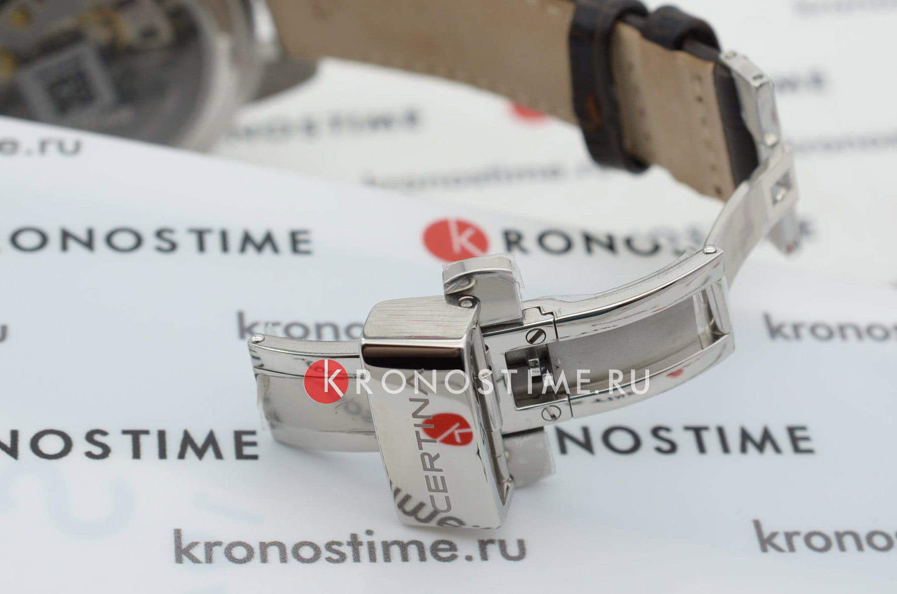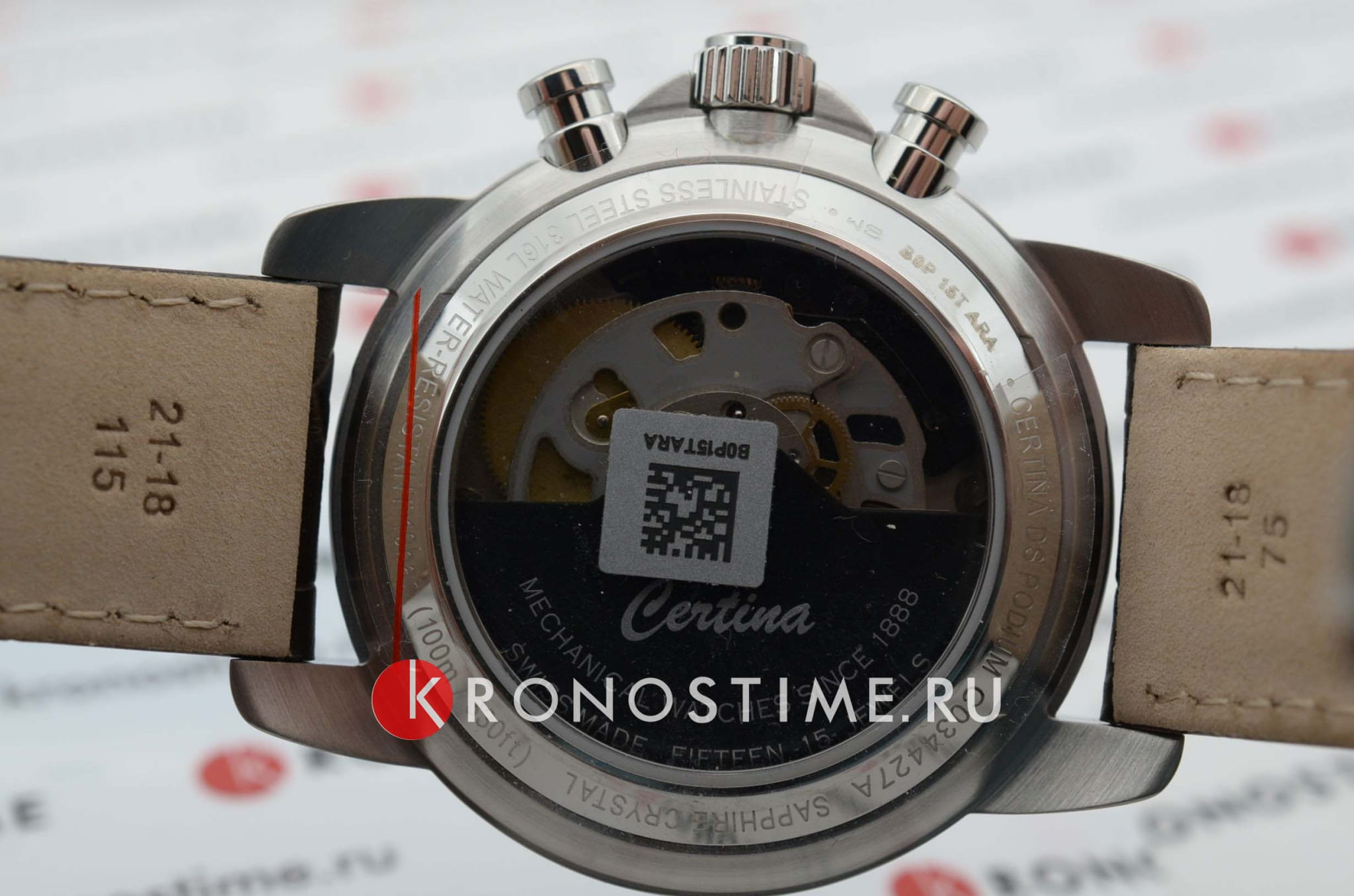 Наручные часы гармонично объединяет лаконичность чёрного циферблата и металлический блеск нержавеющей стали 316L. Спортивный аксессуар будет идеальным компаньоном для повседневного образа. Швейцарский кварцевый калибр C01.211 Precidrive™Precidrive™Инновационный кварцевый механизм Certina. Часы, оснащённые этим швейцарским калибром, приравниваются к точности к сертифицированным хронометрам, точность хода составляет +/-10 секунд в год. отличается отменной точностью хода и никогда не подведёт вас. Водонепроницаемость до 10 бар. Реализация концепции DS ConceptDS ConceptDouble Security Concept, обозначает двойную надёжность и безупречную точность часов Certina. Двойная система защиты подразумевает обеспечение максимальной устойчивости к ударам и высоких показателей водонепроницаемости.. Антибликовая обработка для сапфирового стекла. Люминесцентная подсветкаЛюминесцентное покрытиеПозволяет считывать показания времени в темноте. Производители наносят на стрелки, часовые индексы, безель или поверхность циферблата светонакопительный состав, дающий холодное свечение.. Заводная головка с защитой. Предохранительная застёжка «бабочка» с кнопкамиЗастёжка "бабочка"Такой вид застёжки дополняется предохранителями, помогающими избежать случайного раскрытия браслета. Обладают изящным исполнением. . Окошко даты, шкала тахиметраТахиметрРазмеченная шкала, располагается на ободке или безеле часов. Тахиметр позволяет рассчитать скорость на определённом участке пути, расстояние измеряется в километрах или милях., секундомер, хронографХронографФункция позволяет измерять отрезки времени с особой точностью: часы, минуты, секунды. Верным признаком хронографа является наличие на циферблате 3 дополнительных окошек-счётчиков.. Диаметр корпуса: 44 мм.