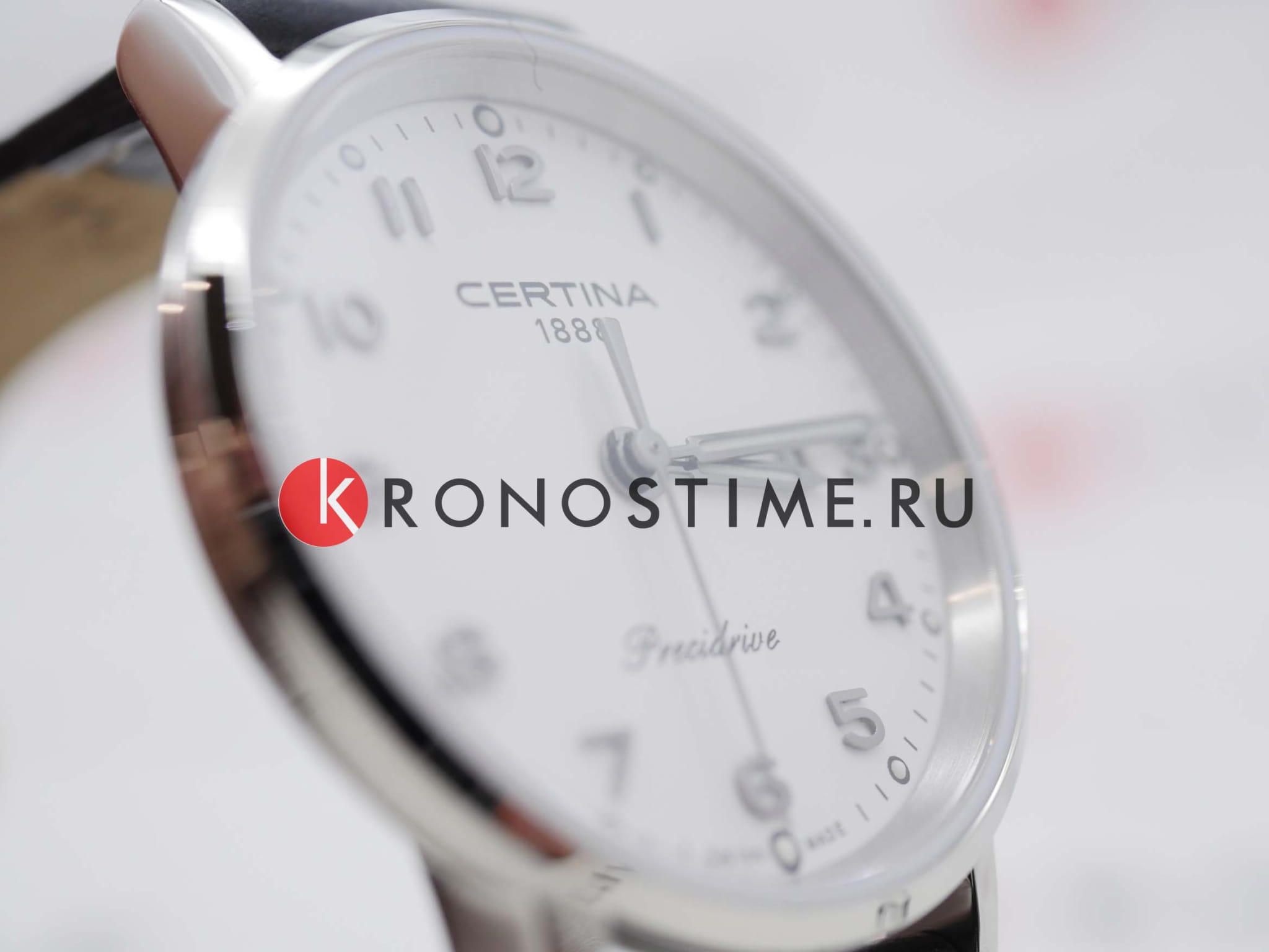 Классический дизайн всегда актуален. Швейцарский кварцевый калибр ETA F03.411 Precidrive™Precidrive™Инновационный кварцевый механизм Certina. Часы, оснащённые этим швейцарским калибром, приравниваются к точности к сертифицированным хронометрам, точность хода составляет +/-10 секунд в год.. Сапфировое стекло сапфира с покрытием «антиблик». Водозащита WR 100. Ремешок из натуральной кожи. Апертура даты, функция EOLEOLПредставляет собой систему, уведомляющую владельца часов о необходимости замены элемента питания. За 2 недели до полного разряда батарейки секундная стрелка перестаёт ходить чётко и начинает перепрыгивать на 3-4 деления..