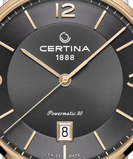 Модель отражает элегантность и изысканность. Корпус и браслет из нержавеющей стали 316L с частичным PVD-покрытиемPVDУльтратонкое покрытие наносится в технике вакуумного напыления, сочетает в себе нитрид титана особой прочности со слоем золота или оксида хрома. Несёт в себе декоративную или защитную функцию.. Система DS ConceptDS ConceptDouble Security Concept, обозначает двойную надёжность и безупречную точность часов Certina. Двойная система защиты подразумевает обеспечение максимальной устойчивости к ударам и высоких показателей водонепроницаемости.. Сапфировое стекло с антибликовым покрытием. Окошко даты находится на 6 часах.Водозащита 100 метров, позволит плавать, нырять и заниматься другими водными видами спорта }.