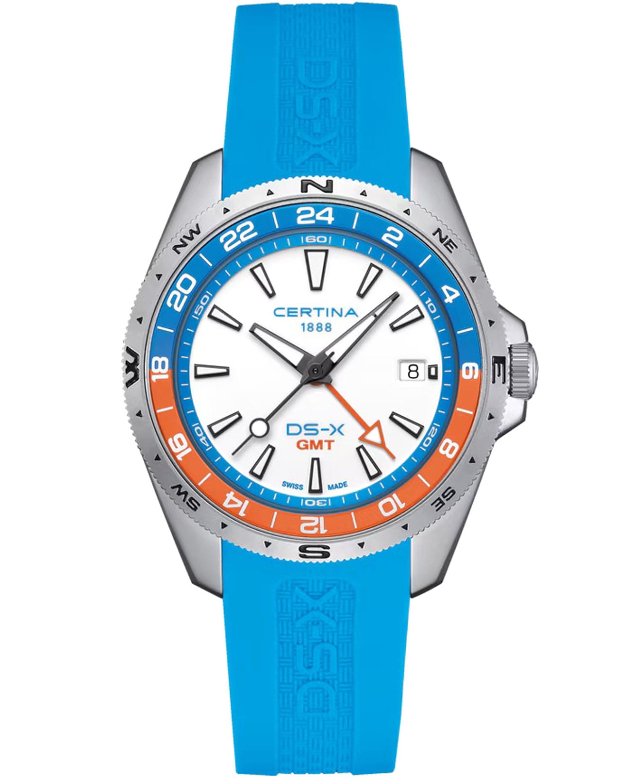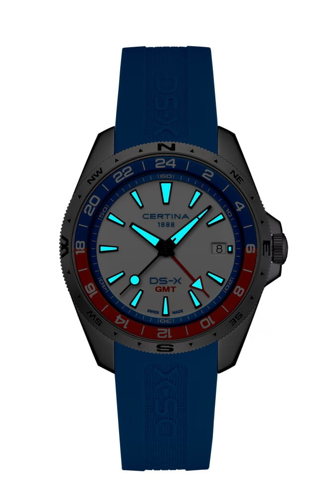 Часы Certina DS-X GMT  C047.452.17.011.00 созданы для тех, кто чувствует себя в дикой природе как рыба в воде, сочетает в себе техническое совершенство и невероятную прочность. Благодаря новой концепции DS Concept Extreme Shock Resistance и технологии HeavyDrive™ эти часы так же надежны, как и ваш дух авантюризма. Сапфировое стеклоСапфировое стеклоПрочный и надёжный материал из кристалла сапфира синтетического происхождения, характеризующийся особой твёрдостью и устойчивостью к царапинам и повреждениям. с антибликовым покрытием с одной стороны чрезвычайно устойчиво к царапинам, ударам и при этом очень прозрачен. Корпус изготовлен из нержавеющей стали 316L, диаметром 41 мм. БезельБезельВнешний ободок, закрепляющий стекло. В спортивных часах так называется поворотное кольцо с делениями на циферблате, выполняет роль таймера – замеряет отрезки времени на шкале. Неподвижный безель – элемент декора. Однонаправленно вращающийся безель на дайверских часах позволяет фиксировать моменты погружения и выныривания на поверхность. из стали и алюминия. Стрелки и метки с люминесцентным покрытиемЛюминесцентное покрытиеПозволяет считывать показания времени в темноте. Производители наносят на стрелки, часовые индексы, безель или поверхность циферблата светонакопительный состав, дающий холодное свечение. Super-LumiNova® (SLN). Окошко даты находится в положении "3 часа". Класс водозащиты: 200 метров, позволит плавать, нырять и заниматься другими водными видами спорта. Резиновый ремешок на стандартной застёжке обеспечивает комфортное ношение. Эта модель оснащена функцией простой настройки второй часовой поясВторой часовой поясФункция, позволяющая отображать время двух часовых поясов одновременно., что идеально подходит для тех, кто хочет знать, который час на другом конце света. Это надежный и функциональный аксессуар, который подчеркнет ваш стиль и поможет всегда быть в курсе времени, где бы вы ни находились.