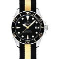 Мужские механические часы Certina DS-Action C0484071805101 — это надёжный аксессуар, созданный для тех, кто ценит сочетание швейцарского качества, функциональности и стиля. Модель входит в коллекцию Aqua, что подчёркивает её предназначение для водных активностей. Корпус диаметром 40,5 мм выполнен из нержавеющей стали с чёрной керамической рамкой, которая не только придаёт модели спортивный вид, но и защищает механизм от царапин. Циферблат чёрного цвета дополнен люминесцентными стрелками и индексами, обеспечивающими отличную читаемость даже в условиях слабого освещения. Защиту механизма обеспечивает сапфировое стеклоСапфировое стеклоПрочный и надёжный материал из кристалла сапфира синтетического происхождения, характеризующийся особой твёрдостью и устойчивостью к царапинам и повреждениям. с антибликовым покрытиемАнтибликовое покрытиеСлой оксида металла в 0,13-0,3 микрон, благодаря которому стекло часов не бликует и не отражает свет. Антибликовое покрытие уменьшает отражение света в 10 раз, обеспечивая отличную читаемость показателей циферблата., устойчивое к повреждениям. Часы оснащены автоматическим механизмом с запасом хода до 80 часов и пружиной баланса Nivachron™, что гарантирует высокую точность и долговечность. Функция отображения времени (часы, минуты, секунды) и даты делает модель удобной для повседневного использования. Водонепроницаемость позволяет использовать часы на глубине до 300 метров — идеально для плавания и ныряния. Ремешок NATO чёрного и золотистого цвета застёгивается на булавку, обеспечивая комфорт и надёжную фиксацию на запястье. Концепция DS, лежащая в основе всех моделей бренда, обеспечивает двойную защиту от ударов и вибраций, а также повышенную устойчивость к внешним воздействиям. Эти часы станут универсальным аксессуаром для тех, кто ценит сочетание стиля, функциональности и надёжности — идеальный выбор для повседневной носки и активного образа жизни.