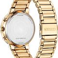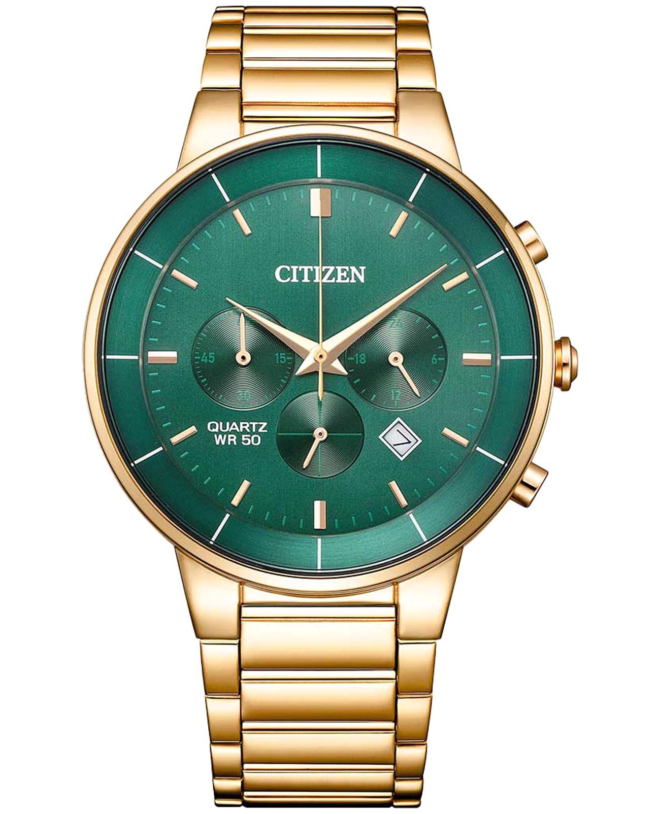 Citizen AN8223-54X — это часы-хронографХронографФункция позволяет измерять отрезки времени с особой точностью: часы, минуты, секунды. Верным признаком хронографа является наличие на циферблате 3 дополнительных окошек-счётчиков. с секундомеромСекундомерСекундоме́р — прибор, способный измерять интервалы времени с точностью до долей секунды., произведены в Японии, с современным кварцевым механизмом Citizen 0520. Секундомер с точностью показаний 1c и временем измерения 60 мин. Секундная стрелка вынесена на отдельный циферблат. 12-ти и 24-х часовой формат времени. Корпус выполнен из прочной нержавеющей стали с элегантным золотистым IP-покрытиемIP-покрытиеМетод ионного напыления. Демонстрирует повышенную устойчивость к истиранию, окислению и химическим веществам. Под воздействием высокого давления и температуры около 1500°C молекулы металла надёжно соединяются с частицами корпуса часов. и имеет диаметр 42 мм, что обеспечивает комфортную посадку на запястье. Окошко даты находится между часовыми отметками 4 и 5. Минеральное стеклоМинеральное стеклоМинеральное стекло представляет собой искусственно выращенный минерал кварца. Такое стекло отличается особой устойчивостью к повреждениям и царапинам. Уступает по некоторым качествам сапфировому стеклу. защищает часы от случайных царапин, а водозащита 50 метров позволит защитить корпус от случайных брызг или капель дождя. Стальной браслет с золотистым IP-покрытиемIP-покрытиеМетод ионного напыления. Демонстрирует повышенную устойчивость к истиранию, окислению и химическим веществам. Под воздействием высокого давления и температуры около 1500°C молекулы металла надёжно соединяются с частицами корпуса часов. на раскладной застёжкойРаскладная застёжкаТакой тип застёжки используется только на браслетах из металла. Она никогда не раскрывается полностью, происходит разделение на 2 и более частей. Раскладывающая застёжка снизит вероятность потери часов к минимуму. обеспечивает комфортное ношение.