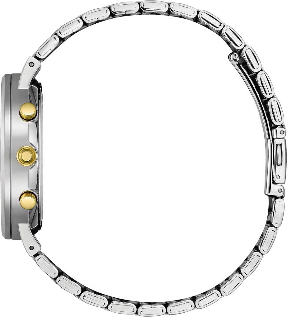 Citizen Chronograph AN8224-51L часы-хронографХронографФункция позволяет измерять отрезки времени с особой точностью: часы, минуты, секунды. Верным признаком хронографа является наличие на циферблате 3 дополнительных окошек-счётчиков. с секундомеромСекундомерСекундоме́р — прибор, способный измерять интервалы времени с точностью до долей секунды.. Корпус из нержавеющей стали диаметром 42 мм идеально сбалансирован. Минеральное стеклоМинеральное стеклоМинеральное стекло представляет собой искусственно выращенный минерал кварца. Такое стекло отличается особой устойчивостью к повреждениям и царапинам. Уступает по некоторым качествам сапфировому стеклу. обеспечивает отличную защиту циферблата от царапин. Часы работают на основе кварцевого механизма. Стальной браслет на раскладной застёжкеРаскладная застёжкаТакой тип застёжки используется только на браслетах из металла. Она никогда не раскрывается полностью, происходит разделение на 2 и более частей. Раскладывающая застёжка снизит вероятность потери часов к минимуму. с IP-покрытиемIP-покрытиеМетод ионного напыления. Демонстрирует повышенную устойчивость к истиранию, окислению и химическим веществам. Под воздействием высокого давления и температуры около 1500°C молекулы металла надёжно соединяются с частицами корпуса часов. идеально дополняют дизайн часов, обеспечивая комфортное ношение. Секундомер с точностью показаний 1c и временем измерения 60мин. Окошко даты находится между часовыми отметками 4 и 5. 12-ти и 24-х часовой формат времени отображается на отдельном циферблате. Циферблат с метками в виде штрихов выполнен по технологии Sunray (солнечные лучи). Заводная головка с защитой. Часы обладают водонепроницаемостью до 50WR, что делает их идеальными для повседневной носки.
