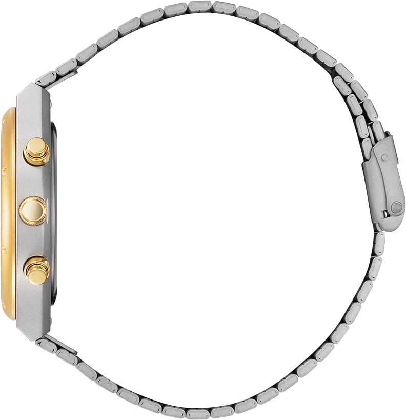 Японские наручные часы Citizen AT2544-64E с хронографомХронографФункция позволяет измерять отрезки времени с особой точностью: часы, минуты, секунды. Верным признаком хронографа является наличие на циферблате 3 дополнительных окошек-счётчиков., выполнены в современном стиле и оснащены функционалом, который идеально подойдет для динамичного ритма жизни. Корпус диаметром 38 мм изготовлен из прочной нержавеющей стали, а на безельБезельВнешний ободок, закрепляющий стекло. В спортивных часах так называется поворотное кольцо с делениями на циферблате, выполняет роль таймера – замеряет отрезки времени на шкале. Неподвижный безель – элемент декора. Однонаправленно вращающийся безель на дайверских часах позволяет фиксировать моменты погружения и выныривания на поверхность. нанесено золотистое IP-покрытиеIP-покрытиеМетод ионного напыления. Демонстрирует повышенную устойчивость к истиранию, окислению и химическим веществам. Под воздействием высокого давления и температуры около 1500°C молекулы металла надёжно соединяются с частицами корпуса часов., что придает модели элегантный внешний вид и дополнительную устойчивость к царапинам. Черный циферблат украшен лаконичными метками в виде штрихов и дополнен отдельным индикатором секунд, а также окошком даты, удобно расположенным в районе 4 часов. Стрелки и часовые метки с люминесцентным покрытиемЛюминесцентное покрытиеПозволяет считывать показания времени в темноте. Производители наносят на стрелки, часовые индексы, безель или поверхность циферблата светонакопительный состав, дающий холодное свечение. обеспечивают отличную читаемость даже в темноте. Часы оснащены высокоточным кварцевым механизмом Citizen H500, который обеспечивает стабильную работу всех функций. Среди них —хронографХронографФункция позволяет измерять отрезки времени с особой точностью: часы, минуты, секунды. Верным признаком хронографа является наличие на циферблате 3 дополнительных окошек-счётчиков. с секундомеромСекундомерСекундоме́р — прибор, способный измерять интервалы времени с точностью до долей секунды., измеряющим время с точностью до одной секунды в течение 60 минут, а также тахиметрТахиметрРазмеченная шкала, располагается на ободке или безеле часов. Тахиметр позволяет рассчитать скорость на определённом участке пути, расстояние измеряется в километрах или милях. для определения средней скорости. Предусмотрены 12- и 24-часовые форматы отображения времени. Модель работает на инновационной системе Eco-Drive, получая энергию от любого источника света и не требуя замены батарейки, запас хода составляет до 150 дней. Встроенные функции индикации заряда и предотвращения перезарядки делают эксплуатацию максимально удобной. Минеральное стеклоМинеральное стеклоМинеральное стекло представляет собой искусственно выращенный минерал кварца. Такое стекло отличается особой устойчивостью к повреждениям и царапинам. Уступает по некоторым качествам сапфировому стеклу. защищает циферблат от случайных повреждений, а стальной браслет с раскладным замкомРаскладной замокДанный вариант застежки используется только на часах с металлическим браслетом. Отличительная особенность такого крепления в том, что длина браслета становится универсальной и вы можете самостоятельно отрегулировать нужный вам размер – застеж