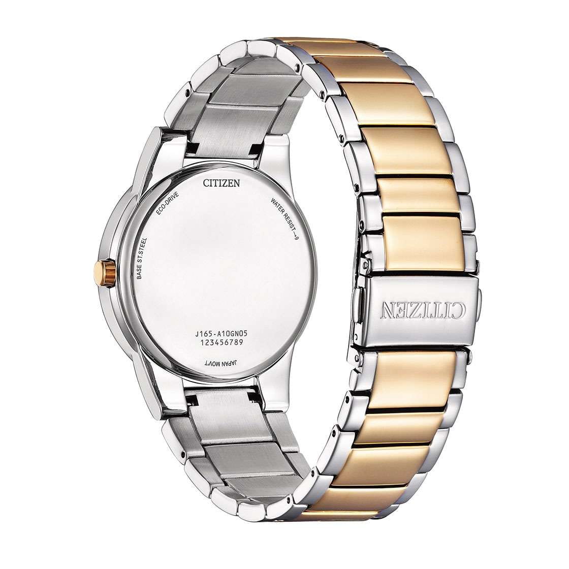 Часы Citizen AU1064-85A представлены в строгом и элегантном дизайне, идеально подходящем для делового стиля. Корпус выполнен из высококачественной нержавеющей стали, а на браслет частично нанесено IP-покрытиеIP-покрытиеМетод ионного напыления. Демонстрирует повышенную устойчивость к истиранию, окислению и химическим веществам. Под воздействием высокого давления и температуры около 1500°C молекулы металла надёжно соединяются с частицами корпуса часов., что обеспечивает долговечность и презентабельный внешний вид. Белый циферблат с минималистичным оформлением подчеркивает сдержанность модели, а окошко даты удобно расположено в положении 3 часа. Надежный кварцевый механизм Citizen J165 работает на инновационной системе Eco-Drive, которая питается от солнечной энергии и не требует замены батарейки, обеспечивая запас хода до 270 дней. Часы оснащены функцией индикации заряда EOLEOLПредставляет собой систему, уведомляющую владельца часов о необходимости замены элемента питания. За 2 недели до полного разряда батарейки секундная стрелка перестаёт ходить чётко и начинает перепрыгивать на 3-4 деления. и защитой от перезаряда. Минеральное стеклоМинеральное стеклоМинеральное стекло представляет собой искусственно выращенный минерал кварца. Такое стекло отличается особой устойчивостью к повреждениям и царапинам. Уступает по некоторым качествам сапфировому стеклу. надежно защищает циферблат от случайных повреждений, а водозащита уровня WR30 позволяет не снимать часы при случайном контакте с водой. Диаметр корпуса составляет 40 мм, что делает модель универсальным аксессуаром для любого случая. Раскладная застёжкаРаскладная застёжкаТакой тип застёжки используется только на браслетах из металла. Она никогда не раскрывается полностью, происходит разделение на 2 и более частей. Раскладывающая застёжка снизит вероятность потери часов к минимуму. на браслете обеспечивает дополнительный комфорт при носке.