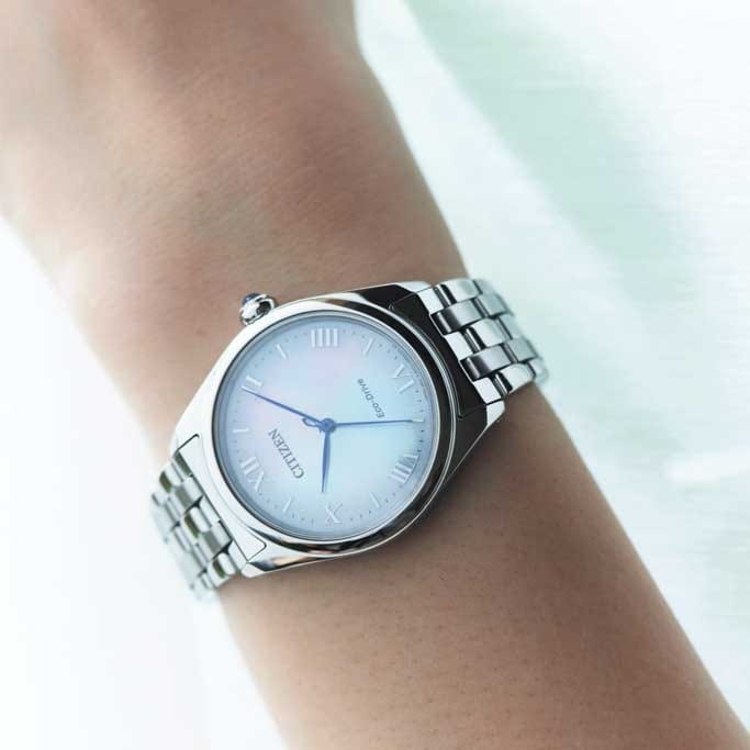 Часы Citizen EM1140-80D созданы для тех, кто ценит изящество и передовые технологии. Модель выполнена в Японии и оснащена кварцевым механизмом Citizen E031 с инновационной системой Eco-Drive, которая обеспечивает питание от солнечной энергии и не требует замены батарейки. Запаса энергии хватает на 180 дней, а функция индикации заряда и система предотвращения перезарядки гарантируют стабильную работу. Корпус диаметром 33 мм и толщиной 8,7 мм изготовлен из высококачественной стали, а перламутровый циферблат с римскими цифрами и штрихами придает часам утончённый вид. Сапфировое стеклоСапфировое стеклоПрочный и надёжный материал из кристалла сапфира синтетического происхождения, характеризующийся особой твёрдостью и устойчивостью к царапинам и повреждениям. надежно защищает циферблат от царапин и повреждений. Заводная головка украшена камнем в форме кабошона, что добавляет особого шарма аксессуару. Стальной браслет с удобной застежкой «бабочка»Застёжка "бабочка"Такой вид застёжки дополняется предохранителями, помогающими избежать случайного раскрытия браслета. Обладают изящным исполнением. обеспечивает комфортную посадку на запястье. Водозащита уровня 50WR позволяет использовать часы в повседневной жизни, не опасаясь попадания влаги. Эта модель станет стильным и надежным дополнением к вашему образу.