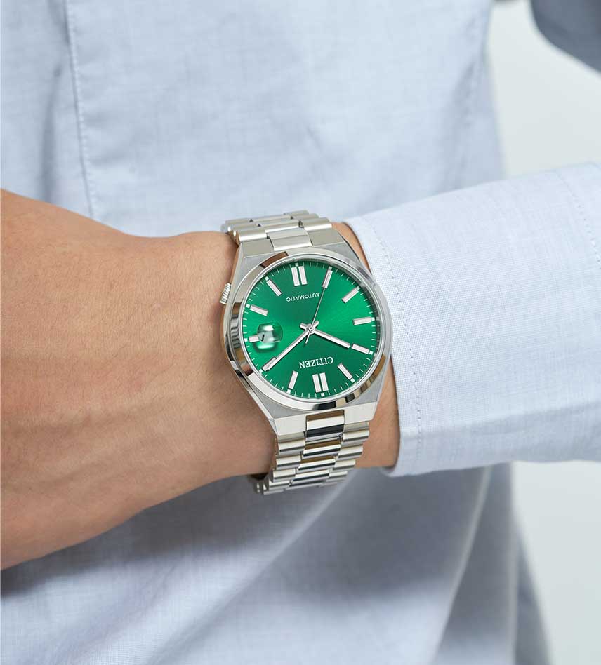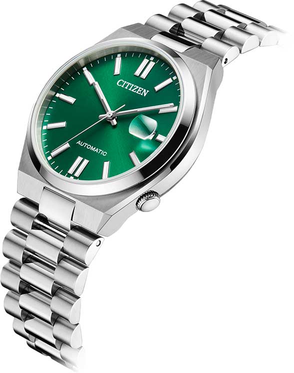 Мужские часы Citizen Tsuyosa NJ0150-81X - идеальное сочетание классического и современного дизайна. Корпус из нержавеющей стали диаметром 40 мм идеально сбалансирован. Сапфировое стеклоСапфировое стеклоПрочный и надёжный материал из кристалла сапфира синтетического происхождения, характеризующийся особой твёрдостью и устойчивостью к царапинам и повреждениям. обеспечивает отличную защиту циферблата от царапин. Механические часы с автоподзаводом. Стальной браслет на раскладной застёжкеРаскладная застёжкаТакой тип застёжки используется только на браслетах из металла. Она никогда не раскрывается полностью, происходит разделение на 2 и более частей. Раскладывающая застёжка снизит вероятность потери часов к минимуму. идеально дополняют дизайн часов, обеспечивая комфортное ношение. Метки в виде штрихов. Окошко даты в положении 3 часа. Стрелки и метки с люминесцентным покрытиемЛюминесцентное покрытиеПозволяет считывать показания времени в темноте. Производители наносят на стрелки, часовые индексы, безель или поверхность циферблата светонакопительный состав, дающий холодное свечение.. В механизме 21 камень, частота 21600 полуколебаний в час. Запас хода 42 часа. Рифленая заводная головка находится в положении 4 часа. Завинчивающаяся прозрачная задняя крышка. Часы обладают водонепроницаемостью до 50WR, что делает их идеальными для повседневной носки.
