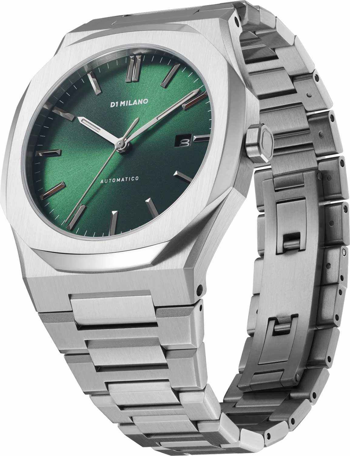 Часы D1 Milano ATBJ12 – стильный аксессуар для современных мужчин. Часы механические с автоподзаводом. В механизме 24 камня, частота 28 800 полуколебаний в час. Запас хода 42 часа. Корпус выполнен из прочной нержавеющей стали 316L, а циферблат украшен простыми штрихами вместо цифр. Стрелки с люминесцентным покрытиемЛюминесцентное покрытиеПозволяет считывать показания времени в темноте. Производители наносят на стрелки, часовые индексы, безель или поверхность циферблата светонакопительный состав, дающий холодное свечение.. Окошко даты расположено в позиции 3 часа, добавляя функциональность дизайну. Задняя крышка прозрачная, закреплена на 8 винтах, что обеспечивает надежность конструкции. Стальной браслет на раскладной застёжкеРаскладная застёжкаТакой тип застёжки используется только на браслетах из металла. Она никогда не раскрывается полностью, происходит разделение на 2 и более частей. Раскладывающая застёжка снизит вероятность потери часов к минимуму.. Часы сочетают в себе классический дизайн и современные технологии производства.