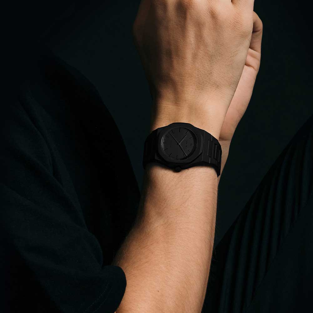 Часы D1 Milano Polycarbon PCBJ10 – молодежные часы в стиле унисекс для повседневных образов. Модель Shadow имеет черный корпус из поликарбоната с покрытием Софт-Тач. Циферблат лаконичный с индексами в виде штрихов, защищен минеральным стекломМинеральное стеклоМинеральное стекло представляет собой искусственно выращенный минерал кварца. Такое стекло отличается особой устойчивостью к повреждениям и царапинам. Уступает по некоторым качествам сапфировому стеклу. с антибликовым покрытием. Стрелки с люминесцентным покрытиемЛюминесцентное покрытиеПозволяет считывать показания времени в темноте. Производители наносят на стрелки, часовые индексы, безель или поверхность циферблата светонакопительный состав, дающий холодное свечение., светятся в темноте. Стальная задняя крышка на 4 винтах. Пластиковый браслет с раскладной застёжкойРаскладная застёжкаТакой тип застёжки используется только на браслетах из металла. Она никогда не раскрывается полностью, происходит разделение на 2 и более частей. Раскладывающая застёжка снизит вероятность потери часов к минимуму..
