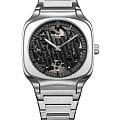 Часы D1 Milano SLBJ01 — это воплощение современной элегантности, вдохновленной классическими традициями. Эти механические часы с автоподзаводом впечатляют своим уникальным дизайном и высоким качеством исполнения. Квадратный корпус из стали 316L с размерами 37х37 мм и толщиной 11,3 мм дополнен прозрачной задней крышкой, закрепленной на 4 винтах, что позволяет любоваться скелетонизированным механизмом и частотой 21600 полуколебаний в час. Серый циферблат защищен сапфировым стекломСапфировое стеклоПрочный и надёжный материал из кристалла сапфира синтетического происхождения, характеризующийся особой твёрдостью и устойчивостью к царапинам и повреждениям. с антибликовым покрытием, а метки в виде штрихов добавляют дизайну лаконичности и изысканности. Часы оснащены браслетом из нержавеющей стали с раскладной застёжкойРаскладная застёжкаТакой тип застёжки используется только на браслетах из металла. Она никогда не раскрывается полностью, происходит разделение на 2 и более частей. Раскладывающая застёжка снизит вероятность потери часов к минимуму., обеспечивая надежность и комфорт при носке. Запас хода составляет 41 час, что делает их идеальным выбором для современных ценителей времени. Водозащита до 50WR гарантирует защиту от влаги в повседневных условиях. Эти итальянские часы представляют собой идеальное сочетание традиционного мастерства и инновационного подхода, воплощая в себе новый взгляд на классическую элегантность.