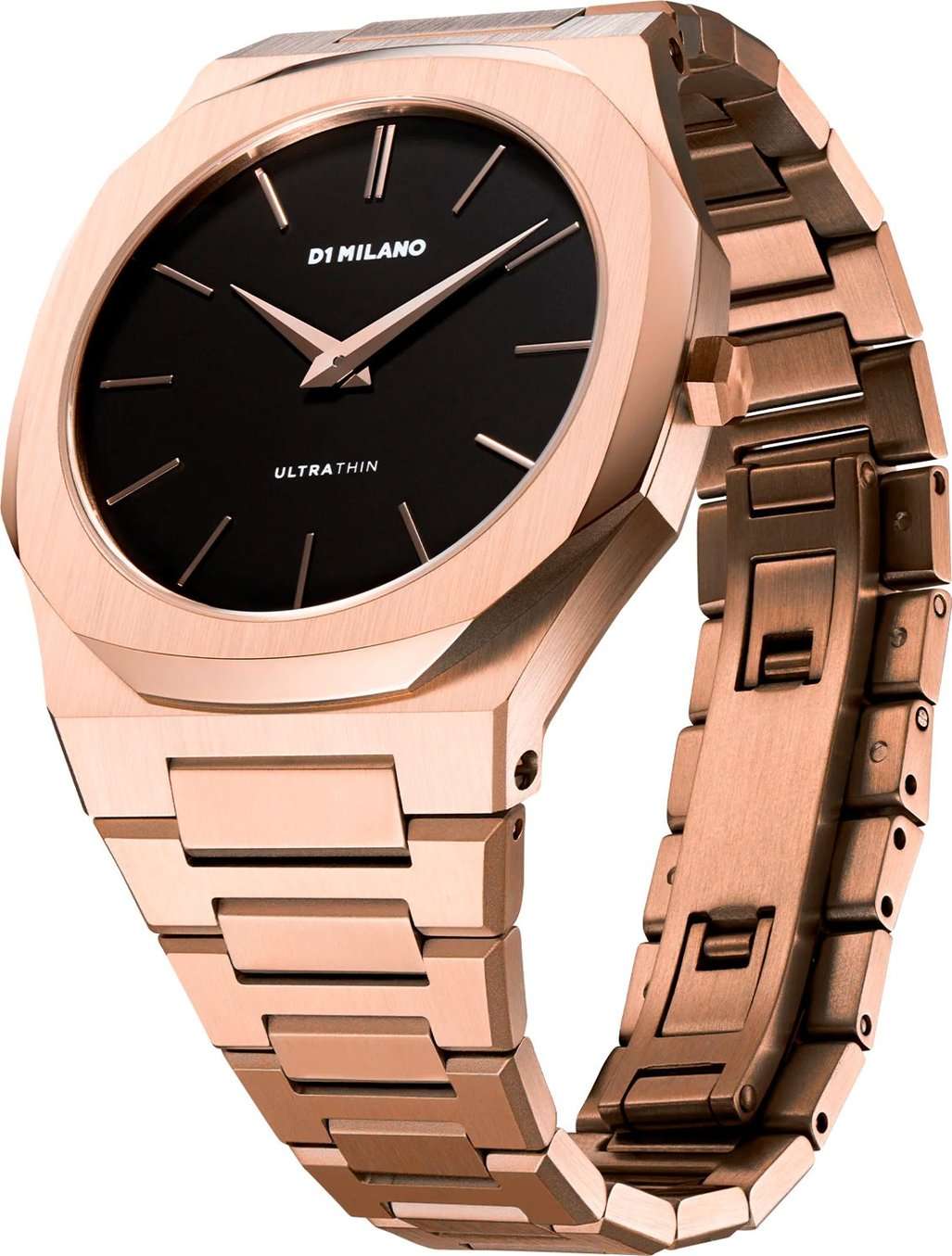 Часы D1 Milano UTBJ42 — это уникальные кварцевые часы, которые подчеркнут ваш изысканный стиль. Эти наручные часы из коллекции Ultra Thin с эффектным монохромным дизайном станут выразительным акцентом вашего образа. Корпус диаметром 40 мм из нержавеющей стали с PVDPVDУльтратонкое покрытие наносится в технике вакуумного напыления, сочетает в себе нитрид титана особой прочности со слоем золота или оксида хрома. Несёт в себе декоративную или защитную функцию. покрытием придает часам современный и утонченный вид. Черный циферблат метками в виде штрихов, а золотые хроматические стрелки и индексы создают стильный контраст, подчёркивая элегантность модели. Задняя крышка из нержавеющей стали закреплена на 8-х винтах и дополнена индивидуальным серийным номером, что подчеркивает уникальность каждого экземпляра. Стальной браслет с PVDPVDУльтратонкое покрытие наносится в технике вакуумного напыления, сочетает в себе нитрид титана особой прочности со слоем золота или оксида хрома. Несёт в себе декоративную или защитную функцию. покрытием и с раскладной застёжкойРаскладная застёжкаТакой тип застёжки используется только на браслетах из металла. Она никогда не раскрывается полностью, происходит разделение на 2 и более частей. Раскладывающая застёжка снизит вероятность потери часов к минимуму. обеспечивает надежность и комфорт в повседневном использовании. Сапфировое стеклоСапфировое стеклоПрочный и надёжный материал из кристалла сапфира синтетического происхождения, характеризующийся особой твёрдостью и устойчивостью к царапинам и повреждениям. с антибликовым покрытием защищает циферблат, а водозащита до 50WR делает эти часы практичным выбором для любых условий. Благодаря калибру Miyota 1L22, они отличаются точностью и надежностью. Эти итальянские часы представляют собой идеальное сочетание традиционного мастерства и инновационного подхода, воплощая в себе новый взгляд на классическую элегантность.