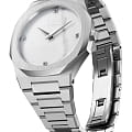 Женские наручные часы D1 Milano UTBL13 из коллекции Ultra Thin сочетают в себе элегантный дизайн и современные технологии. Модель обладает круглым корпусом диаметром 34 мм, изготовленным из высококачественной нержавеющей стали. Толщина ультратонкого корпуса составляет всего 6 мм, что делает аксессуар легким и удобным для повседневного использования. Браслет также выполнен из нержавеющей стали с раскладной застежкойРаскладной замокДанный вариант застежки используется только на часах с металлическим браслетом. Отличительная особенность такого крепления в том, что длина браслета становится универсальной и вы можете самостоятельно отрегулировать нужный вам размер – застежка просто двигается по браслету часов., гарантирующей комфортное ношение и безопасность. Циферблат белого и серого мраморного цвета украшен метками в виде кристаллов и оснащен стрелочным механизмом, который подчеркивает элегантность модели. Для защиты используется сапфировое стеклоСапфировое стеклоПрочный и надёжный материал из кристалла сапфира синтетического происхождения, характеризующийся особой твёрдостью и устойчивостью к царапинам и повреждениям. с антибликовым покрытиемАнтибликовое покрытиеСлой оксида металла в 0,13-0,3 микрон, благодаря которому стекло часов не бликует и не отражает свет. Антибликовое покрытие уменьшает отражение света в 10 раз, обеспечивая отличную читаемость показателей циферблата., обеспечивающее прочную защиту от царапин и бликов. Часы работают на кварцевом механизме, гарантирующем точность хода без необходимости регулярного подзавода. Водонепроницаемость часов достигает 5 атмосфер (50 метров), что позволяет использовать их во время мытья рук или плавания, однако не рекомендуется для глубоководного дайвинга.