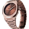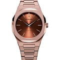 Женские наручные часы D1 Milano UTBL15 из коллекции Ultra Thin Chocolatino сочетают в себе элегантный дизайн и современные технологии. Модель обладает круглым корпусом диаметром 34 мм, изготовленным из высококачественной нержавеющей стали с PVD-покрытиемPVDУльтратонкое покрытие наносится в технике вакуумного напыления, сочетает в себе нитрид титана особой прочности со слоем золота или оксида хрома. Несёт в себе декоративную или защитную функцию., что обеспечивает устойчивость к внешним воздействиям. Толщина ультратонкого корпуса составляет всего 6 мм, делая аксессуар легким и удобным для повседневного использования. Браслет также выполнен из нержавеющей стали с PVD-покрытиемPVDУльтратонкое покрытие наносится в технике вакуумного напыления, сочетает в себе нитрид титана особой прочности со слоем золота или оксида хрома. Несёт в себе декоративную или защитную функцию. и с раскладной застежкойРаскладной замокДанный вариант застежки используется только на часах с металлическим браслетом. Отличительная особенность такого крепления в том, что длина браслета становится универсальной и вы можете самостоятельно отрегулировать нужный вам размер – застежка просто двигается по браслету часов., гарантирующей комфортное ношение и безопасность. Коричневый циферблат с теплыми оттенками шоколада украшен метками в виде штрихов и оснащен стрелочным механизмом в тон корпуса, который подчеркивает элегантность модели. Для защиты используется сапфировое стеклоСапфировое стеклоПрочный и надёжный материал из кристалла сапфира синтетического происхождения, характеризующийся особой твёрдостью и устойчивостью к царапинам и повреждениям., обеспечивающее прочную защиту от царапин и бликов. Часы работают на кварцевом механизме, гарантирующем точность хода без необходимости регулярного подзавода. Водонепроницаемость часов достигает 5 атмосфер (50 метров), что позволяет использовать их во время мытья рук или плавания, однако не рекомендуется для глубоководного дайвинга.