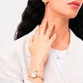 Женские наручные часы с минеральным стекломМинеральное стеклоМинеральное стекло представляет собой искусственно выращенный минерал кварца. Такое стекло отличается особой устойчивостью к повреждениям и царапинам. Уступает по некоторым качествам сапфировому стеклу. Daniel Wellington Quadro Mini Lumine Bezel Rose Gold DW00100731, кварцевый механизм с высокой точностью. Корпус часов изготовлен из нержавеющей стали с PVD-покрытиемPVDУльтратонкое покрытие наносится в технике вакуумного напыления, сочетает в себе нитрид титана особой прочности со слоем золота или оксида хрома. Несёт в себе декоративную или защитную функцию.. Накладные метки в виде штрихов. Японский кварцевый механизм. Рифленая заводная головка. Класс водозащиты: 30 метров, позволит защитить корпус от случайных брызг или капель дождя. Стальной браслет миланского плетения на раскладном замкеРаскладной замокДанный вариант застежки используется только на часах с металлическим браслетом. Отличительная особенность такого крепления в том, что длина браслета становится универсальной и вы можете самостоятельно отрегулировать нужный вам размер – застежка просто двигается по браслету часов. с PVD-покрытиемPVDУльтратонкое покрытие наносится в технике вакуумного напыления, сочетает в себе нитрид титана особой прочности со слоем золота или оксида хрома. Несёт в себе декоративную или защитную функцию.. БезельБезельВнешний ободок, закрепляющий стекло. В спортивных часах так называется поворотное кольцо с делениями на циферблате, выполняет роль таймера – замеряет отрезки времени на шкале. Неподвижный безель – элемент декора. Однонаправленно вращающийся безель на дайверских часах позволяет фиксировать моменты погружения и выныривания на поверхность. инкрустирован кристаллами.