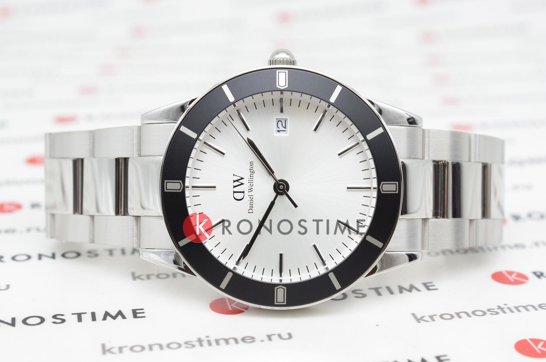 Daniel Wellington — мужские часы в современном спортивно-элегантном стиле. Круглый корпус диаметром 40 мм изготовлен из нержавеющей стали и дополнен чёрным безелемБезельВнешний ободок, закрепляющий стекло. В спортивных часах так называется поворотное кольцо с делениями на циферблате, выполняет роль таймера – замеряет отрезки времени на шкале. Неподвижный безель – элемент декора. Однонаправленно вращающийся безель на дайверских часах позволяет фиксировать моменты погружения и выныривания на поверхность. из анодированного алюминия, которое придаёт модели выразительный характер.