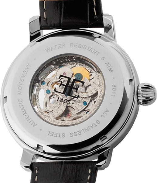 Мужские английские механические часы-скелетоны Earnshaw ES-8011-06, механический механизм (автоматический калибр) с высокой точностью. Класс водозащиты: 50 метров, позволит защитить корпус от случайных брызг или капель дождя. Корпус часов изготовлен из стали, цвета.