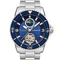 Мужские наручные часы с минеральным стекломМинеральное стеклоМинеральное стекло представляет собой искусственно выращенный минерал кварца. Такое стекло отличается особой устойчивостью к повреждениям и царапинам. Уступает по некоторым качествам сапфировому стеклу. Earnshaw Prevost ES-8210-33, механический механизм с автоподзаводом. Класс водозащиты: 50 метров, позволит защитить корпус от случайных брызг или капель дождя. Корпус часов изготовлен из стали. Центральные часовая, минутная и секундная стрелки. Отображение даты в малом циферблате. Фазы Луны. Черный циферблат с открытым балансом хода. Круглый корпус выполнен из нержавеющей стали. Раскладная застёжкаРаскладная застёжкаТакой тип застёжки используется только на браслетах из металла. Она никогда не раскрывается полностью, происходит разделение на 2 и более частей. Раскладывающая застёжка снизит вероятность потери часов к минимуму.