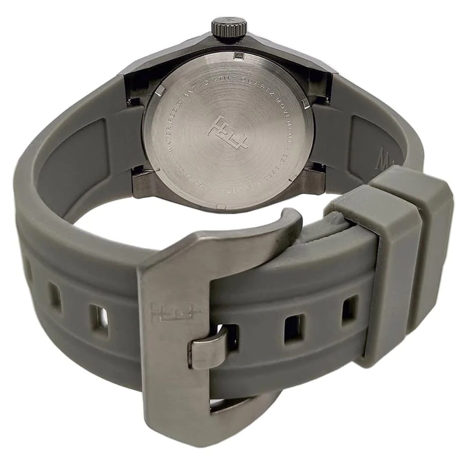 Мужские наручные часы с минеральным стекломМинеральное стеклоМинеральное стекло представляет собой искусственно выращенный минерал кварца. Такое стекло отличается особой устойчивостью к повреждениям и царапинам. Уступает по некоторым качествам сапфировому стеклу. Earnshaw Bessemer ES-8253-04, кварцевый механизм. Класс водозащиты: 100 метров, позволит защитить корпус от воды. Корпус часов изготовлен из стали. Отображение даты и дня недели в малых циферблатах. 12/24х часовой формат времени. Серый циферблат. Люминесцентная подсветкаЛюминесцентное покрытиеПозволяет считывать показания времени в темноте. Производители наносят на стрелки, часовые индексы, безель или поверхность циферблата светонакопительный состав, дающий холодное свечение.. Корпус выполнен из нержавеющей стали с серым IP-покрытиемIP-покрытиеМетод ионного напыления. Демонстрирует повышенную устойчивость к истиранию, окислению и химическим веществам. Под воздействием высокого давления и температуры около 1500°C молекулы металла надёжно соединяются с частицами корпуса часов.. Диаметр корпуса составляет 44 мм, толщина 14 мм. Серый силиконовый ремешок, стандартная застежка.