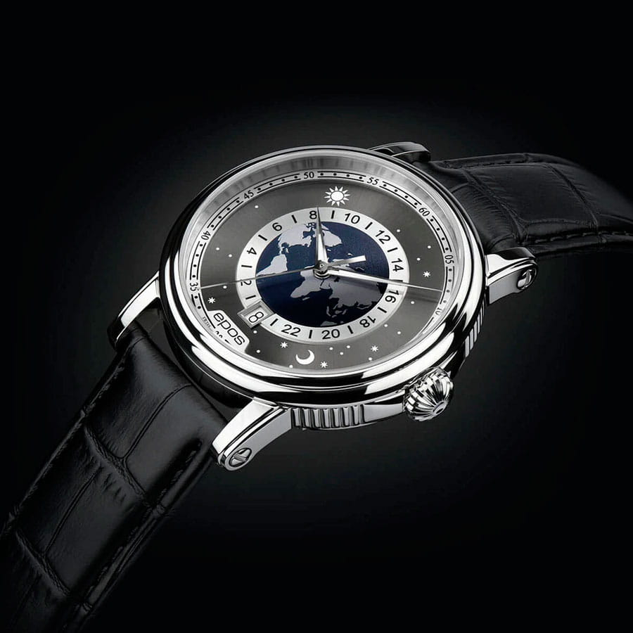 Мужские швейцарские механические часы с автоподзаводом Epos Passion 3390.302.20.54.25. Сапфировое стеклоСапфировое стеклоПрочный и надёжный материал из кристалла сапфира синтетического происхождения, характеризующийся особой твёрдостью и устойчивостью к царапинам и повреждениям. устойчивое к появлению царапин, обладающее высокой прозрачностью. Корпус часов изготовлен из нержавеющей стали. Индикация даты. 24х часовой формат времени. Стрелки и метки с люминесцентной подсветкойЛюминесцентное покрытиеПозволяет считывать показания времени в темноте. Производители наносят на стрелки, часовые индексы, безель или поверхность циферблата светонакопительный состав, дающий холодное свечение.. Окошко даты находится в положении 6 часов. Прозрачная задняя крышка. Класс водозащиты: 50 метров, позволит защитить корпус от случайных брызг или капель дождя. Кожаный ремешок на стандартной застёжке. Ширина ремешка 20 мм.